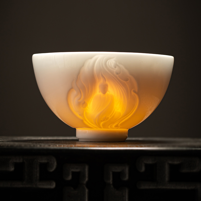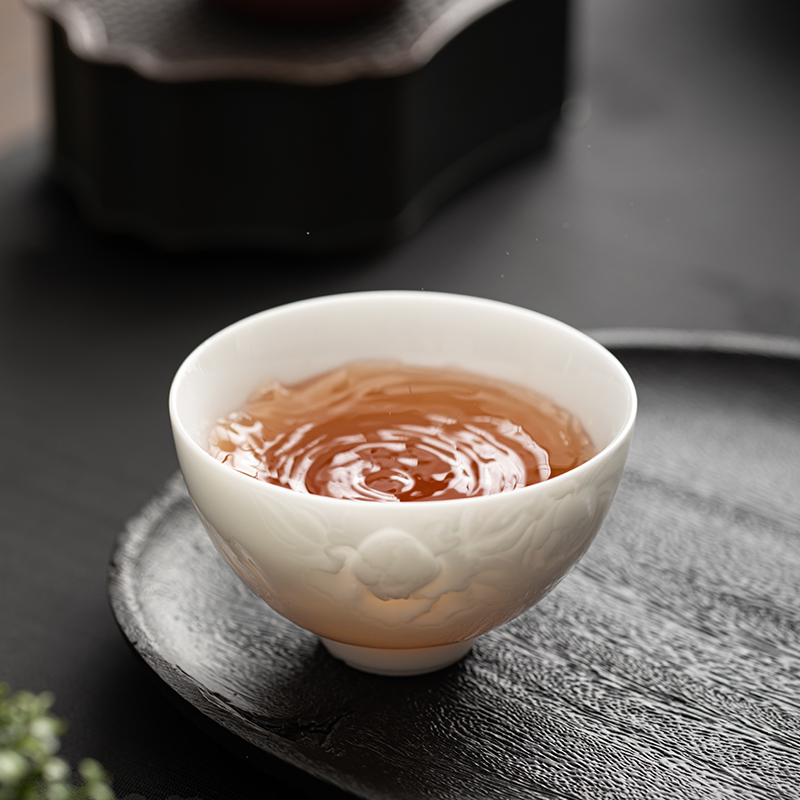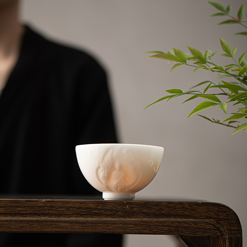 冰种玉瓷主人杯高端轻奢品茗杯家用茶具单杯男士个人茶碗浮雕茶杯