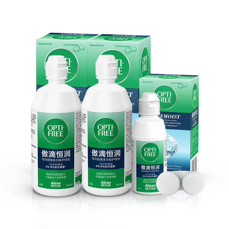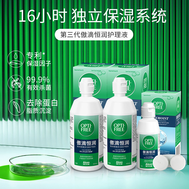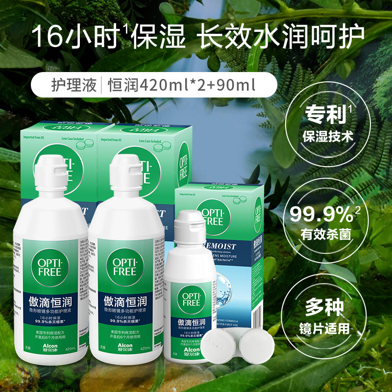 爱尔康隐形眼镜护理液第三代傲滴恒润420ml*2+90ml大小瓶便携正品