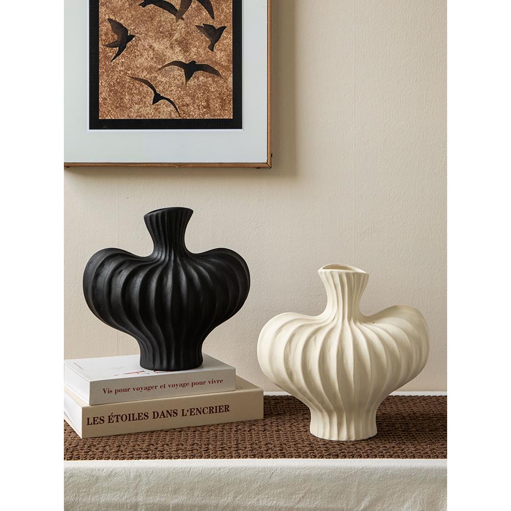 小悠家〖轻奢高级感〗异形陶瓷花瓶摆件客厅插花玄关侘寂风装饰品