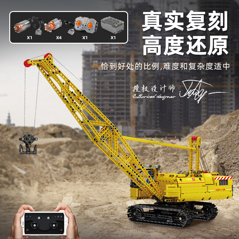 宇星模王旗舰店积木履带式起重机遥控工程车男孩高难度拼装玩具