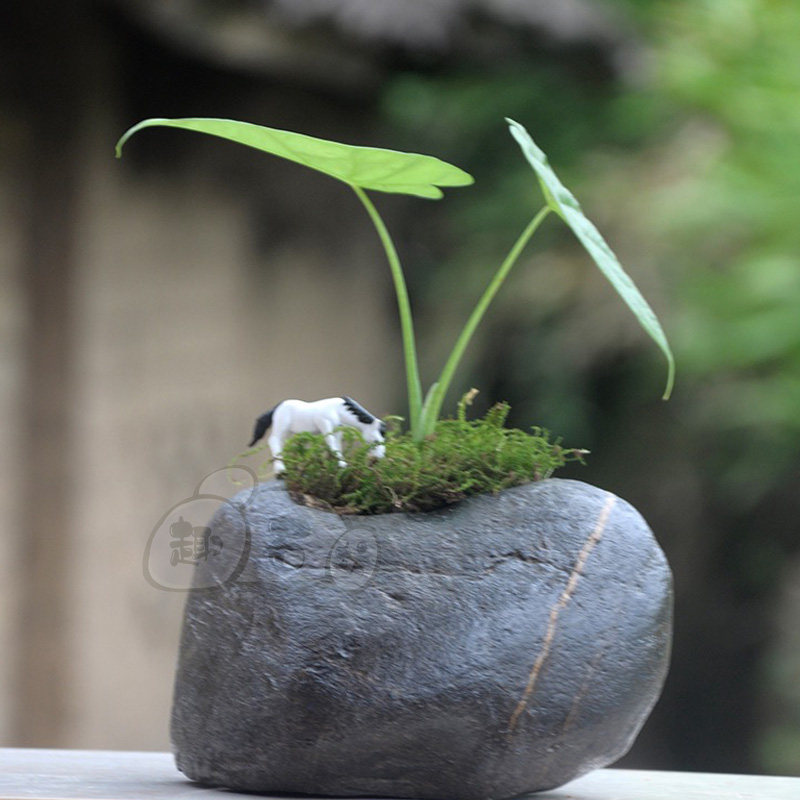 石头花盆原生态天然鹅卵石花瓶多肉铜钱草原石菖蒲盆鱼缸水培造景