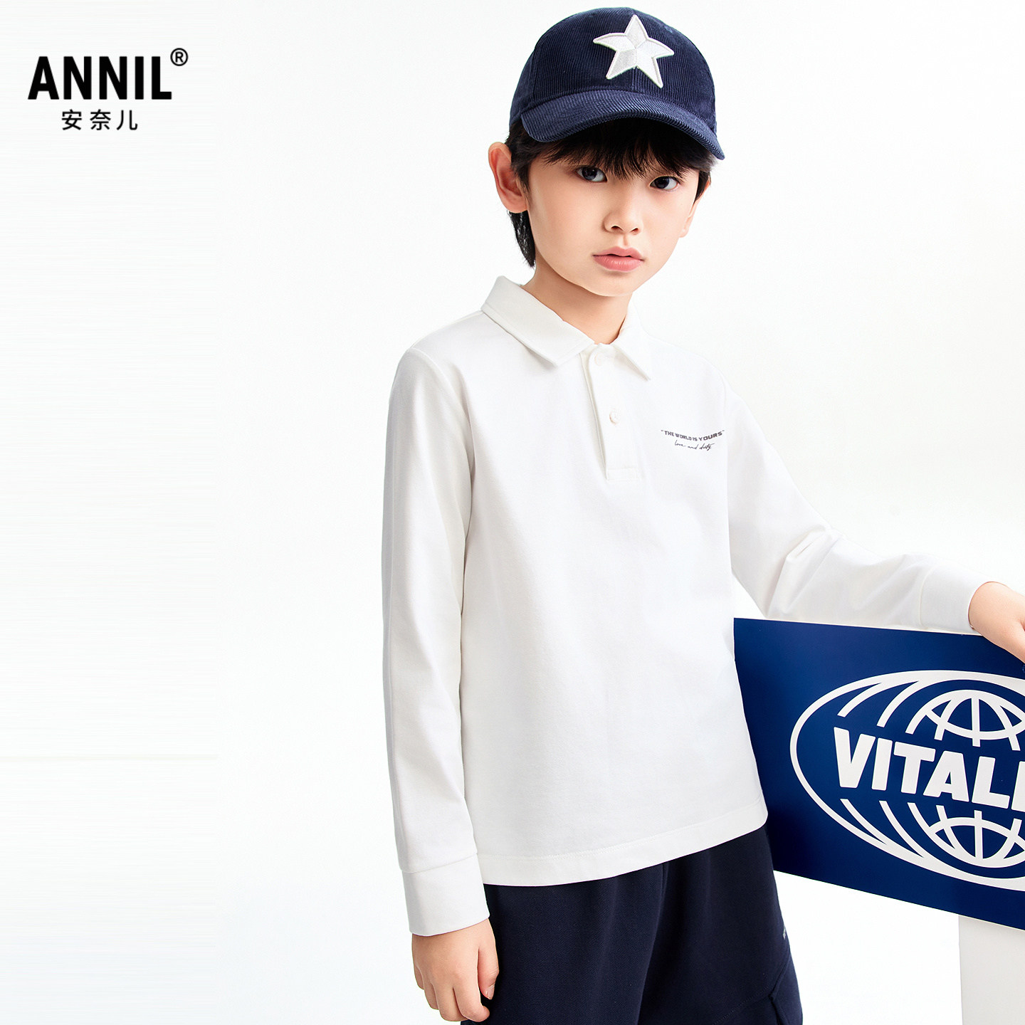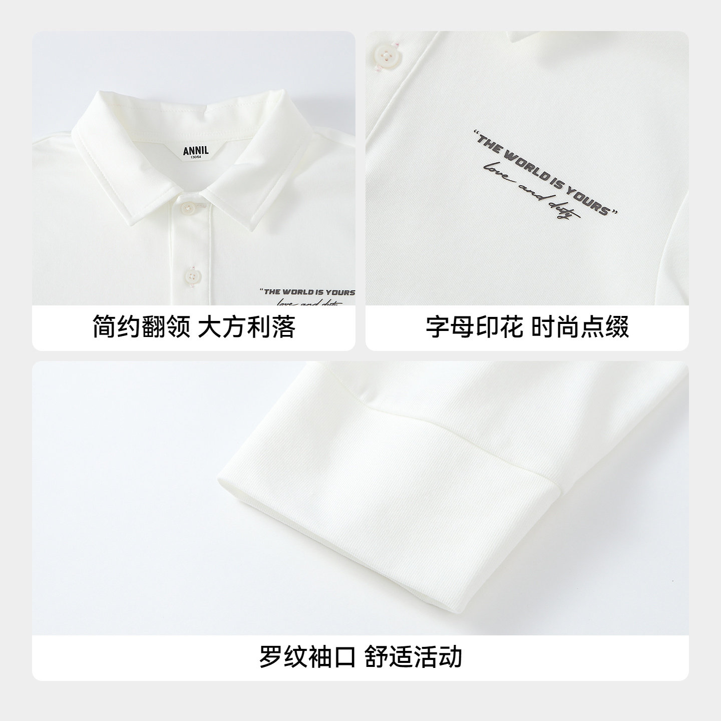 【商场同款】安奈儿童装男童翻领长袖POLO衫2026春新款AB611020