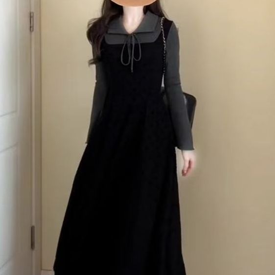 高级感法式假两件针织连衣裙子女早秋2025新款配大衣内搭打底长裙