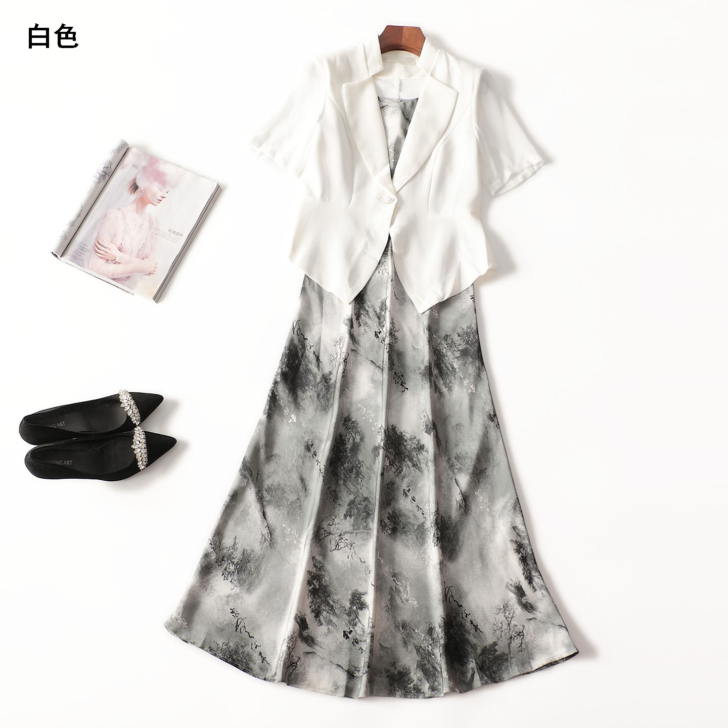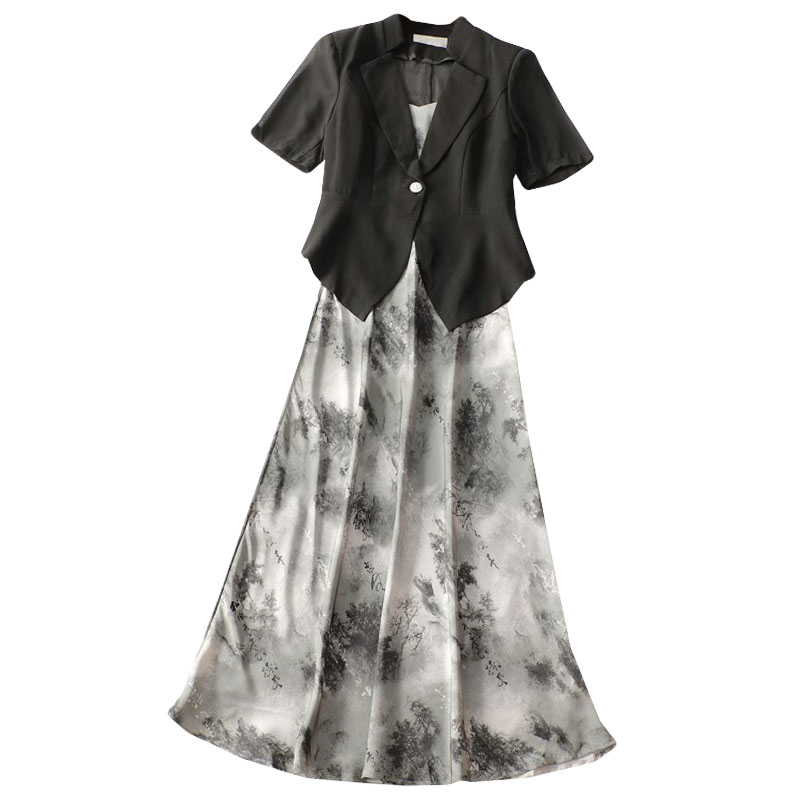 411602超值精品女装气质女人味法式洋气夏短袖外套长裙套装批发