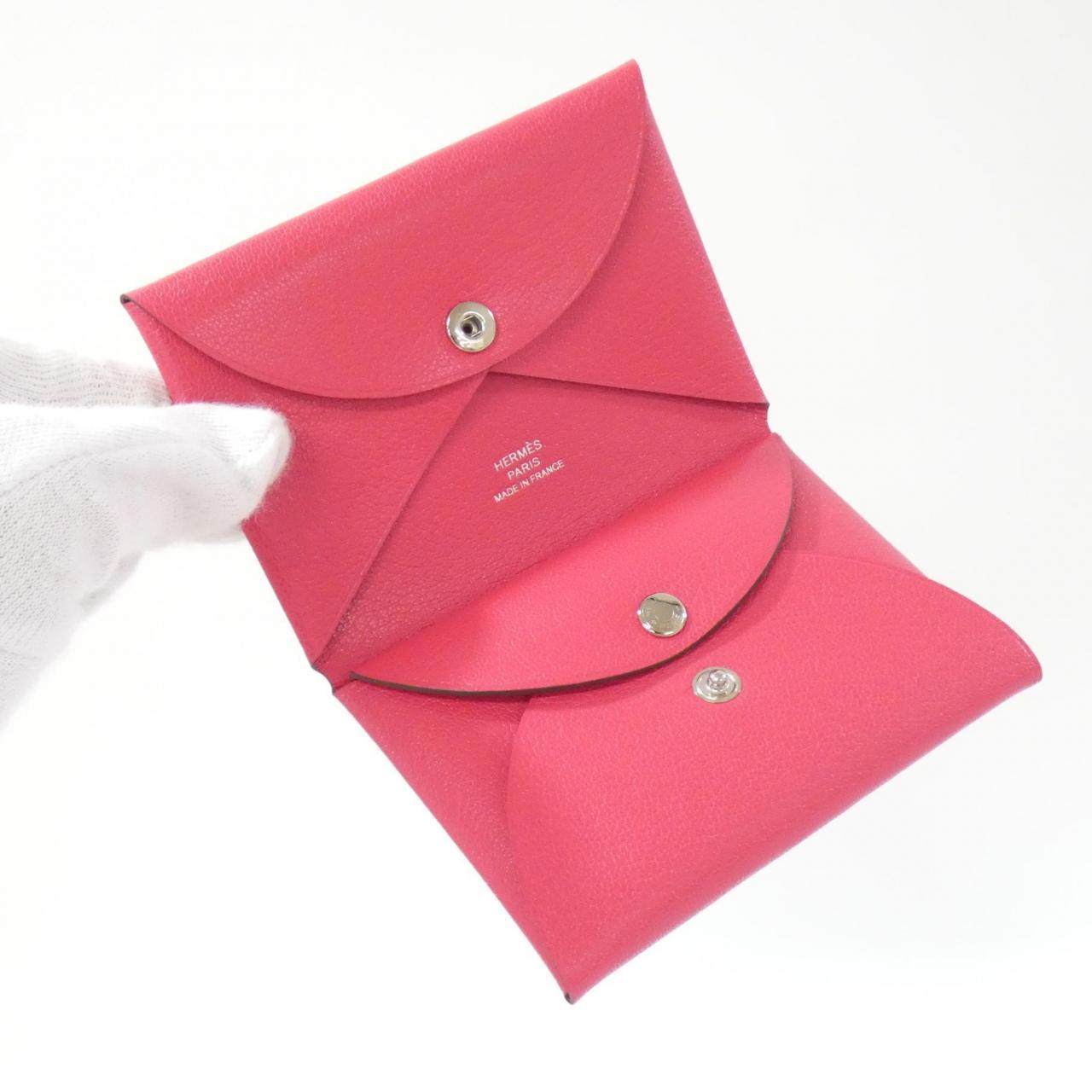 中古Hermes爱马仕A级95新CALVI DUO钱包硬币包极致粉卡包