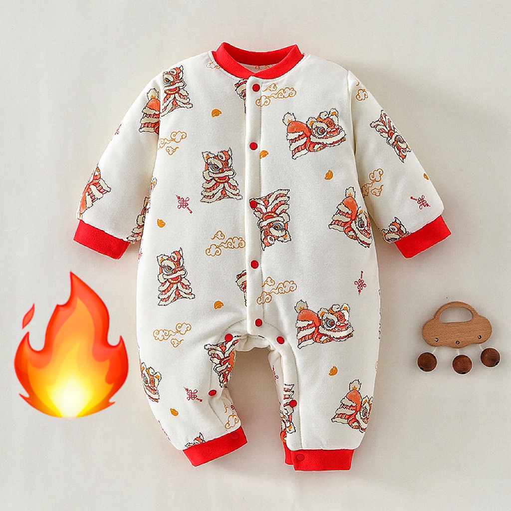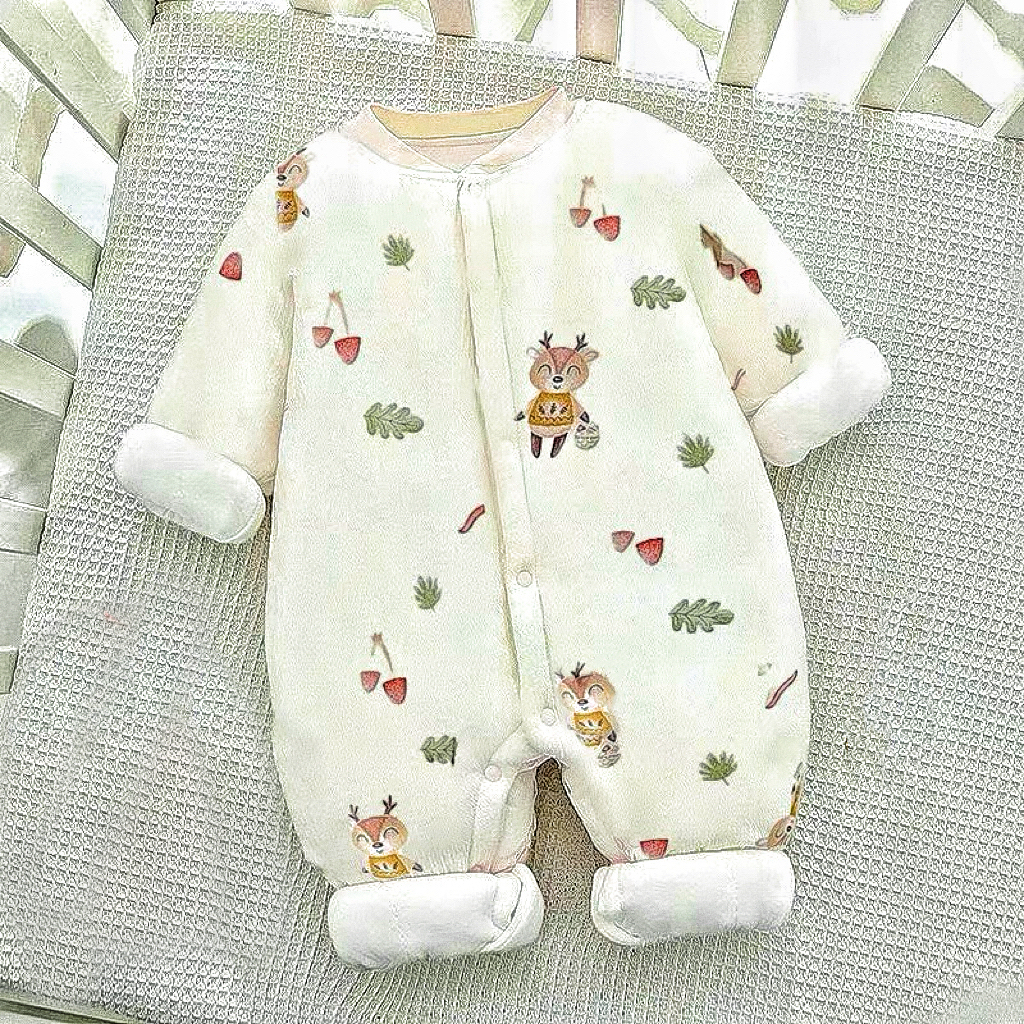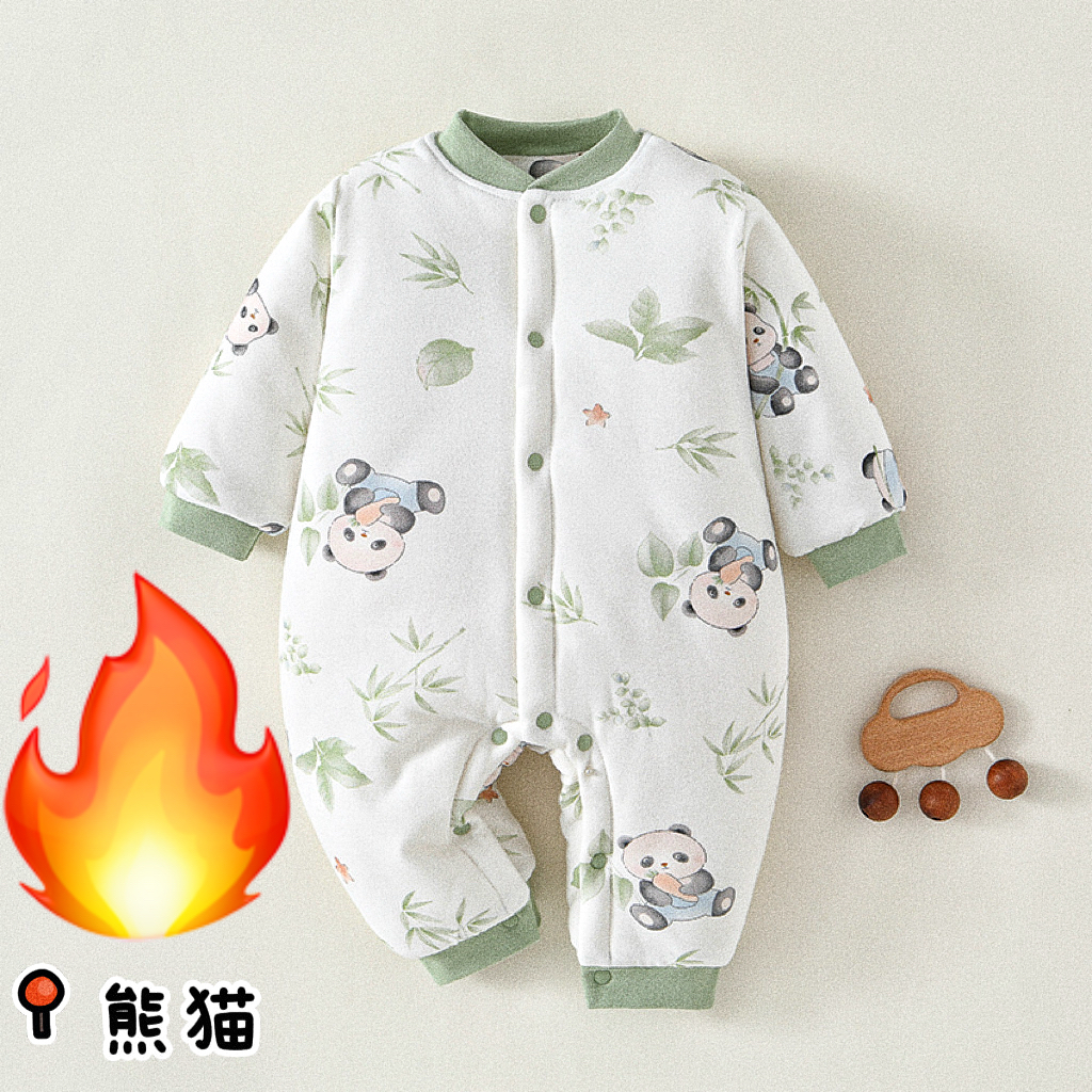 200g夹棉0-15度刚出生穿新生儿连体衣无骨夹棉婴儿服秋冬加厚保暖