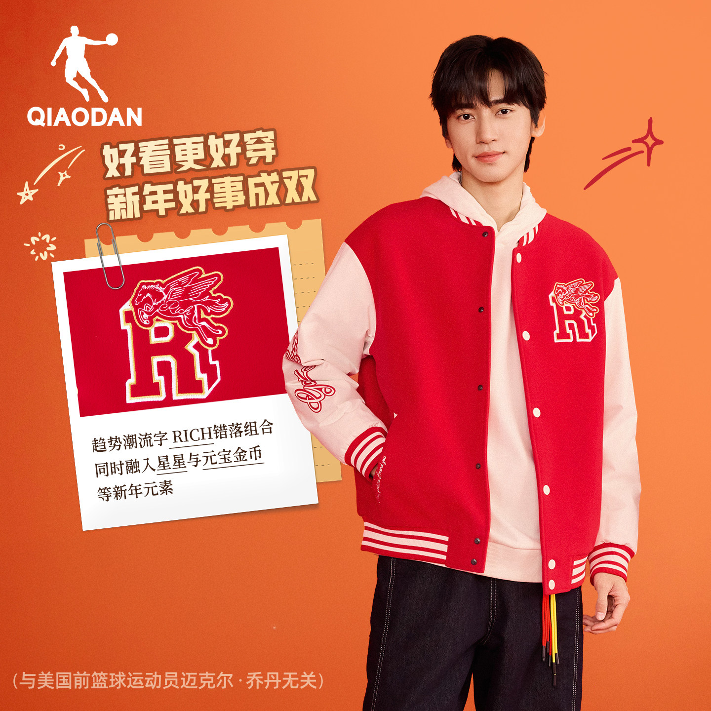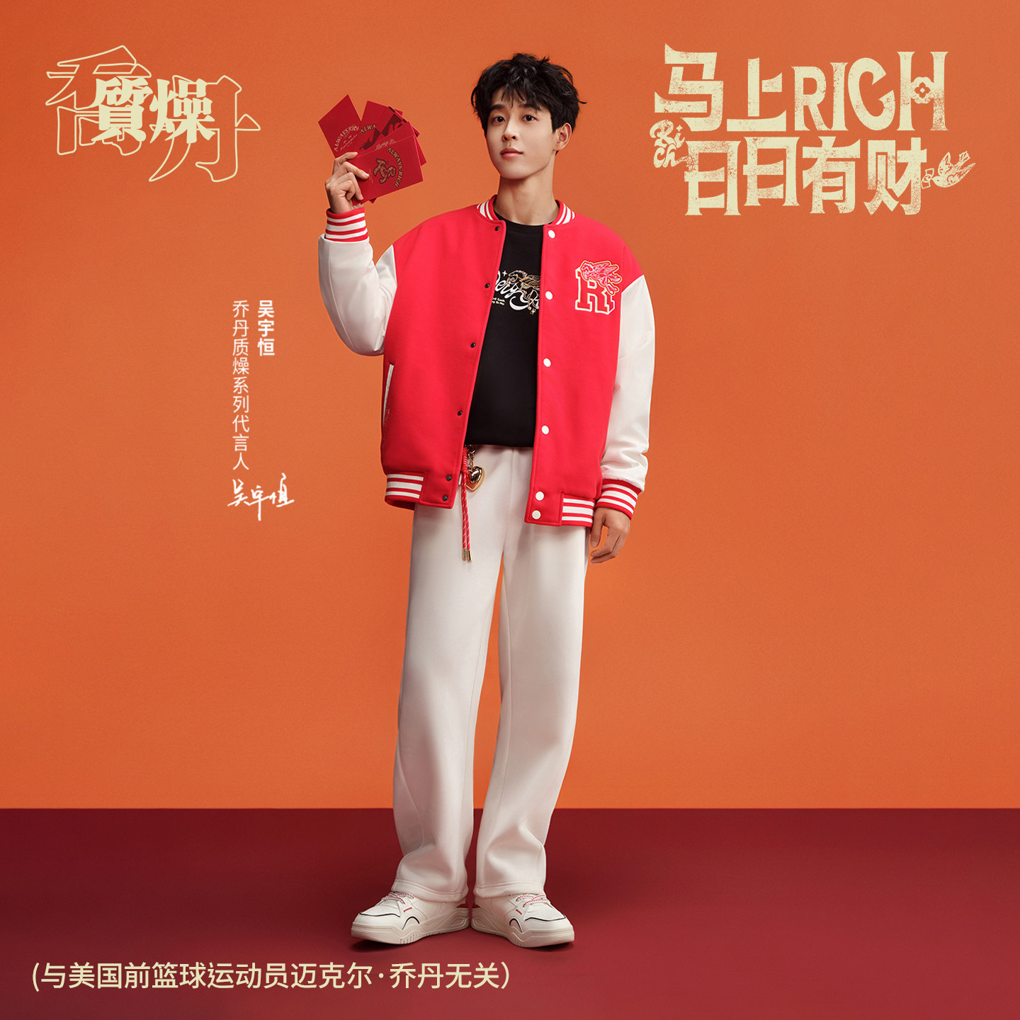 吴宇恒同款乔丹红色棒球服外套男新款马上有钱本命年新年情侣夹克