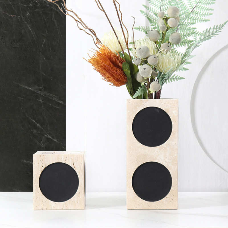 现代轻奢创意天然大理石花瓶花器样板间酒店客厅玄关桌面软装饰品