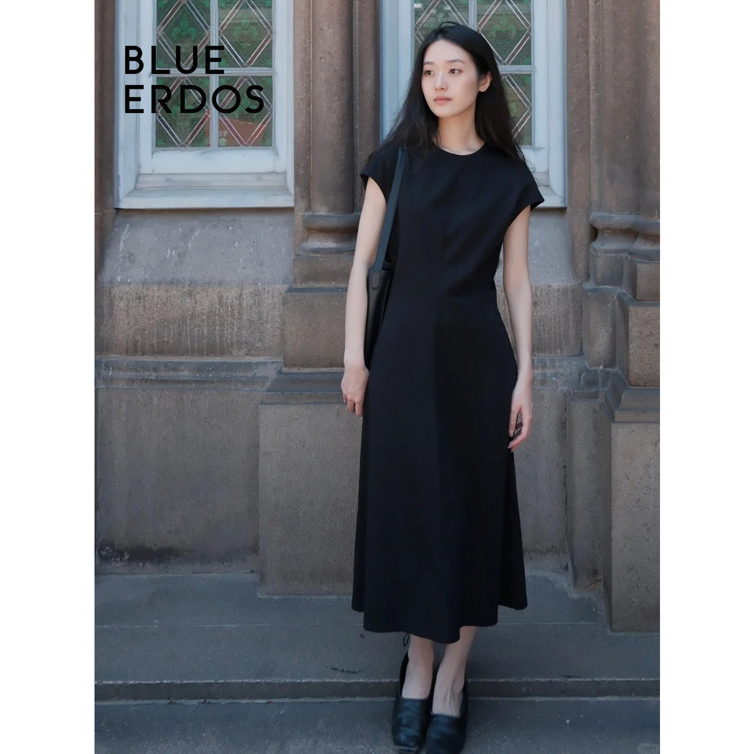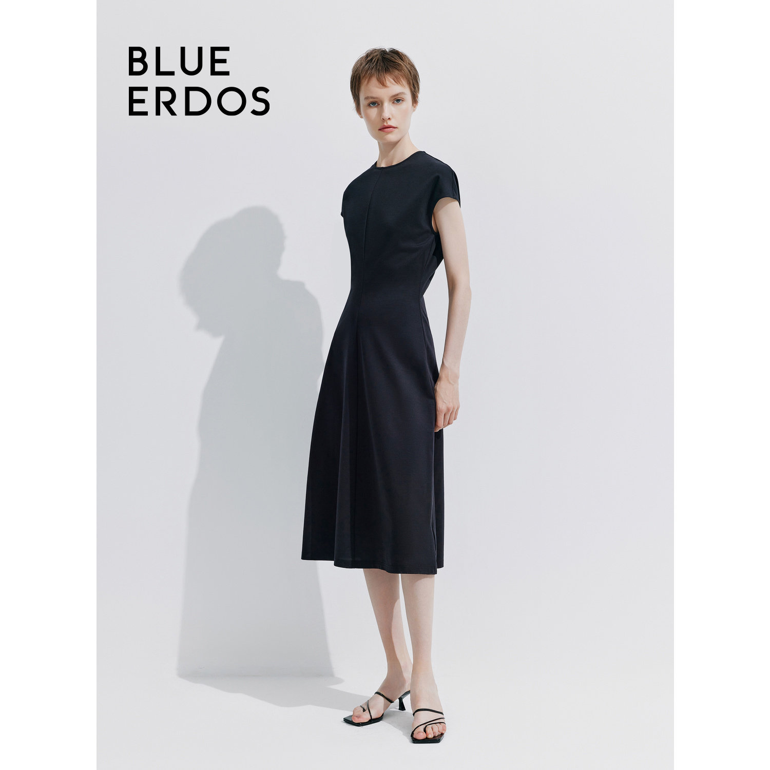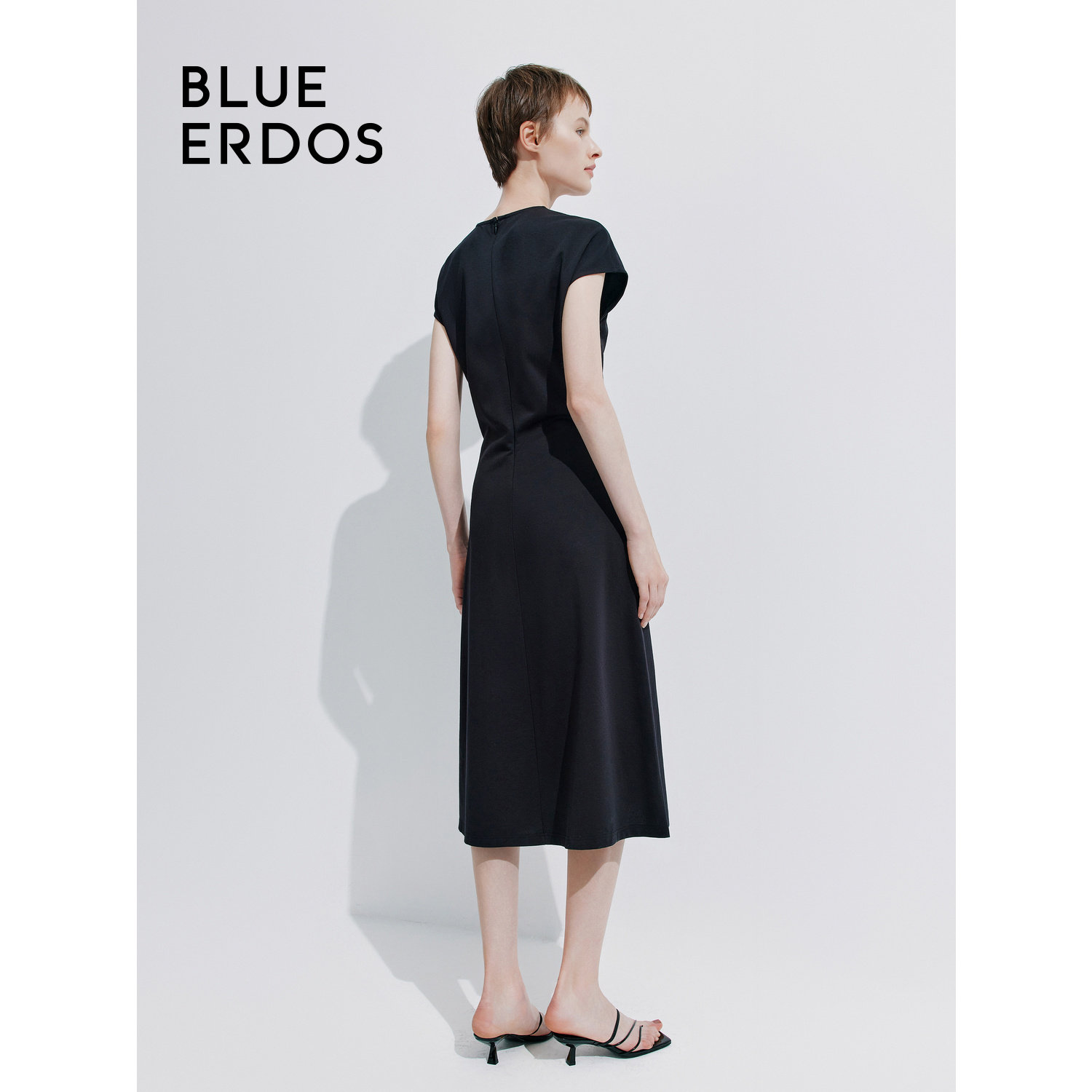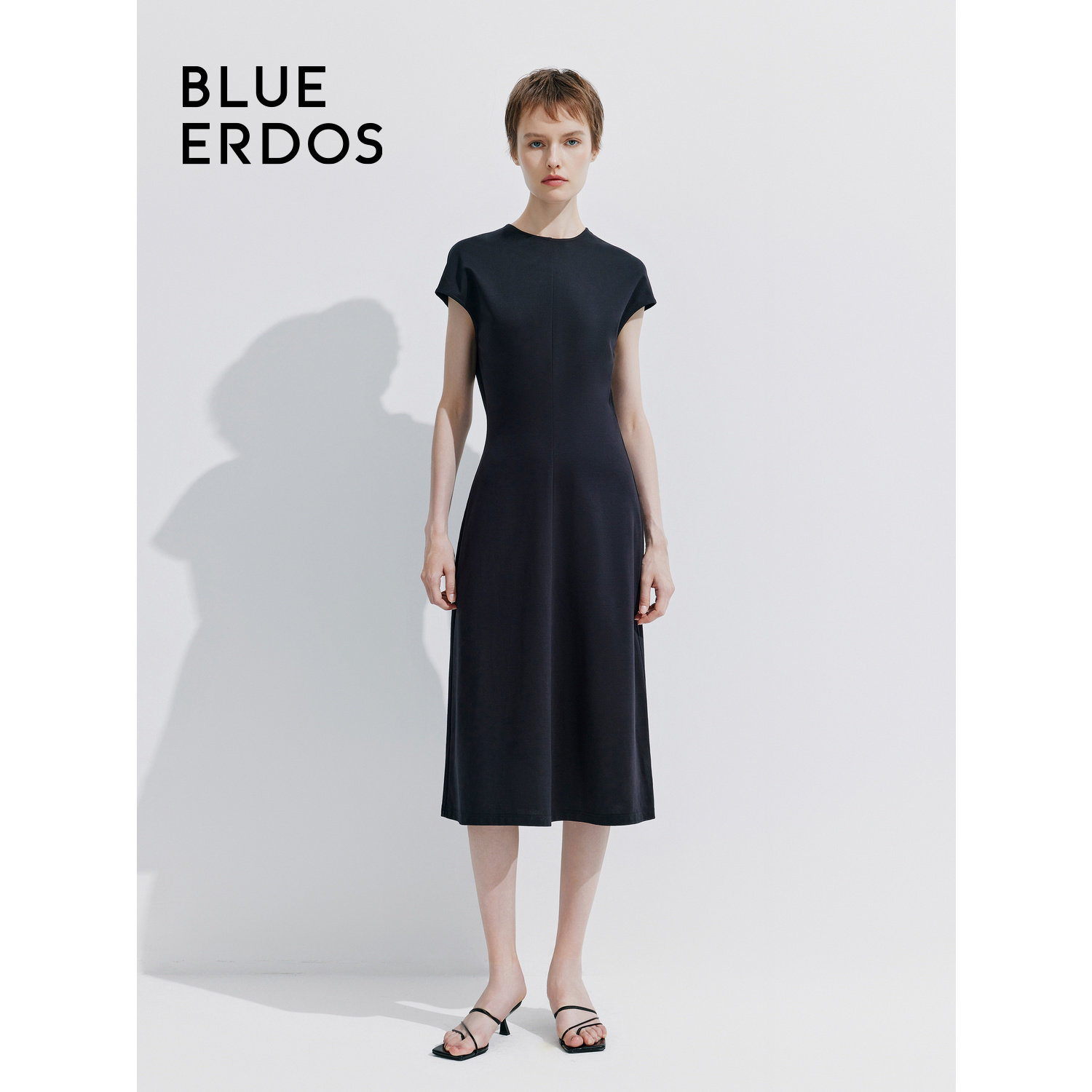 BLUE ERDOS 新款简约圆领纯色中长款短袖连衣裙B245D7029