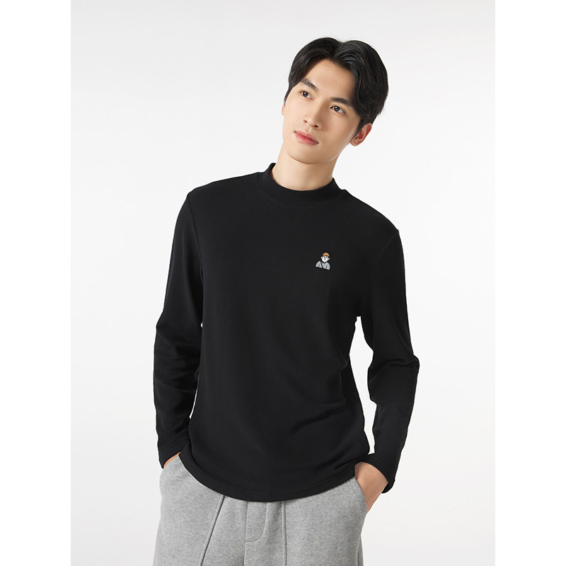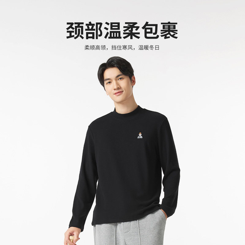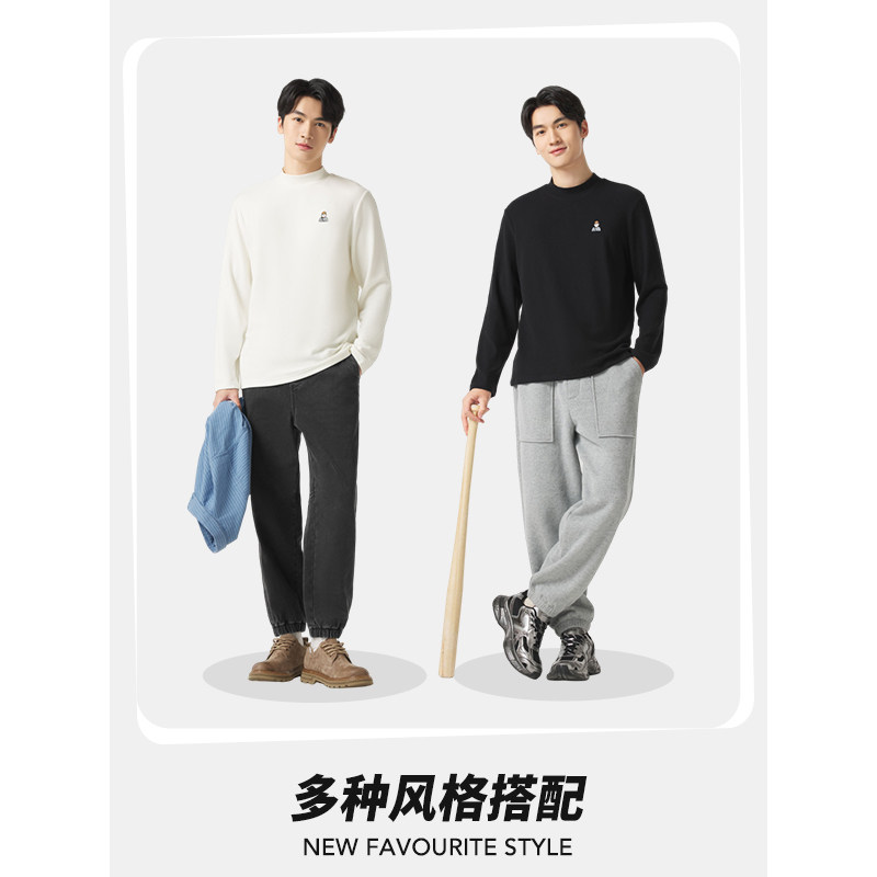 2025年冬款男士趣味半高领长T恤宽松舒适上衣内搭长袖