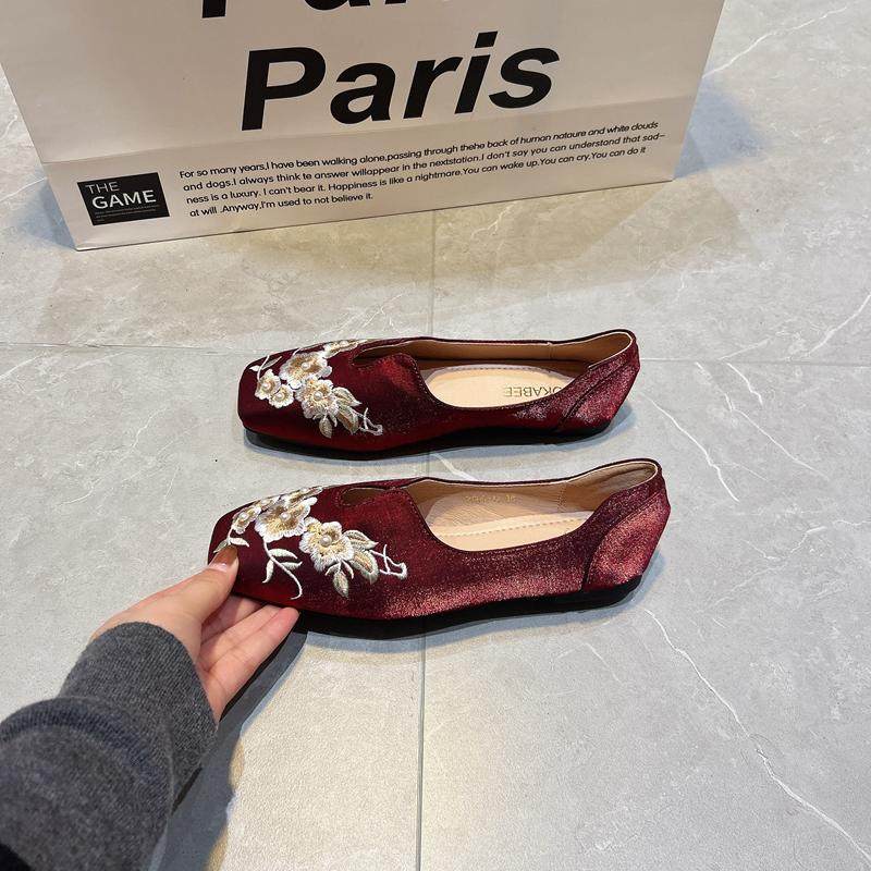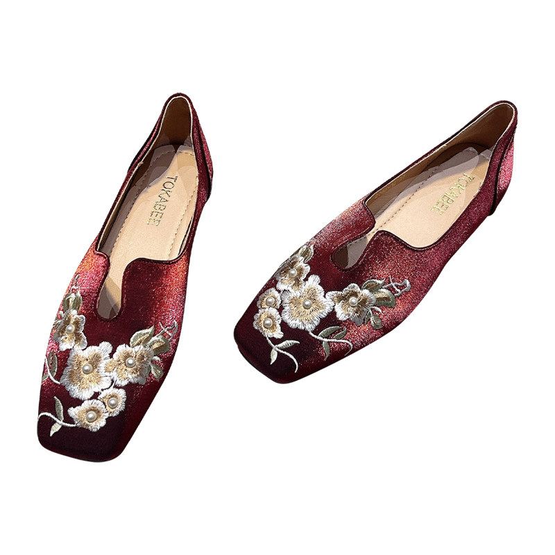 优雅气质新中式鞋子女平底单鞋红色婚鞋2025新款国风软平底豆豆鞋