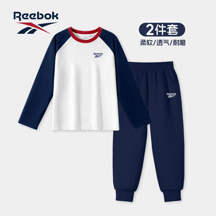 Reebok锐步儿童套装男童2025新款家居服男孩长袖t恤纯棉大童装薄