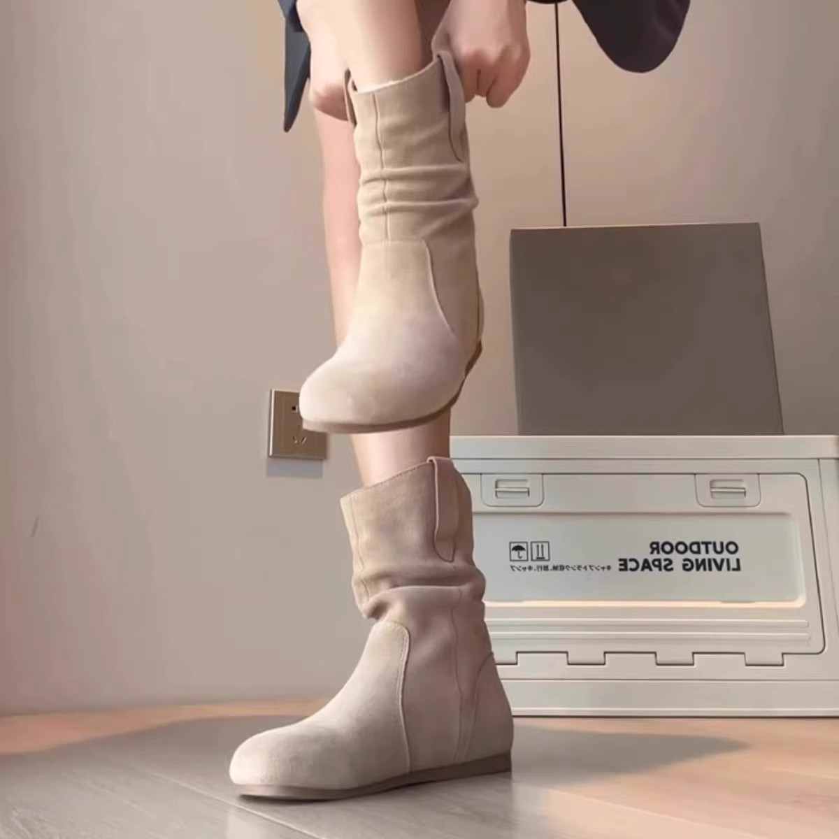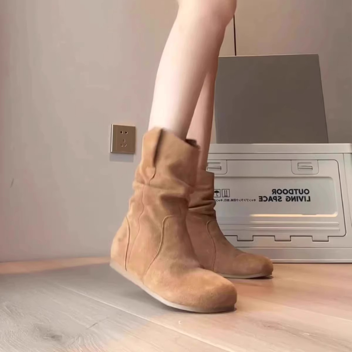 网红堆堆靴子女秋冬2025新款爆款早秋短靴内增高西部牛仔春秋单靴