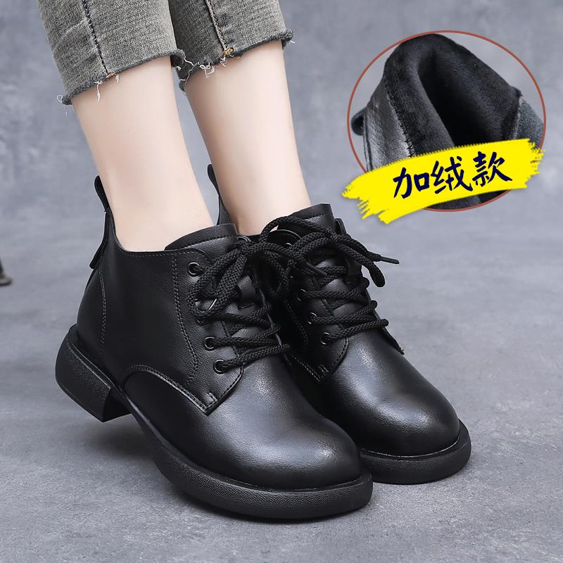 新款真皮马丁靴系带妈妈棉鞋人厚女冬季加加绒保暖短靴平底休闲老