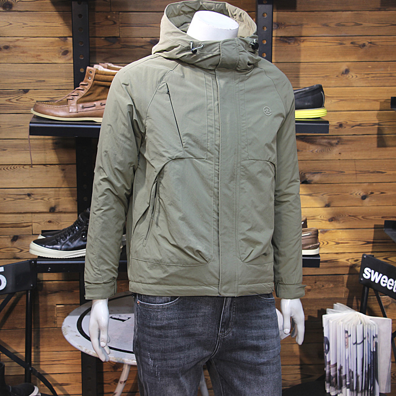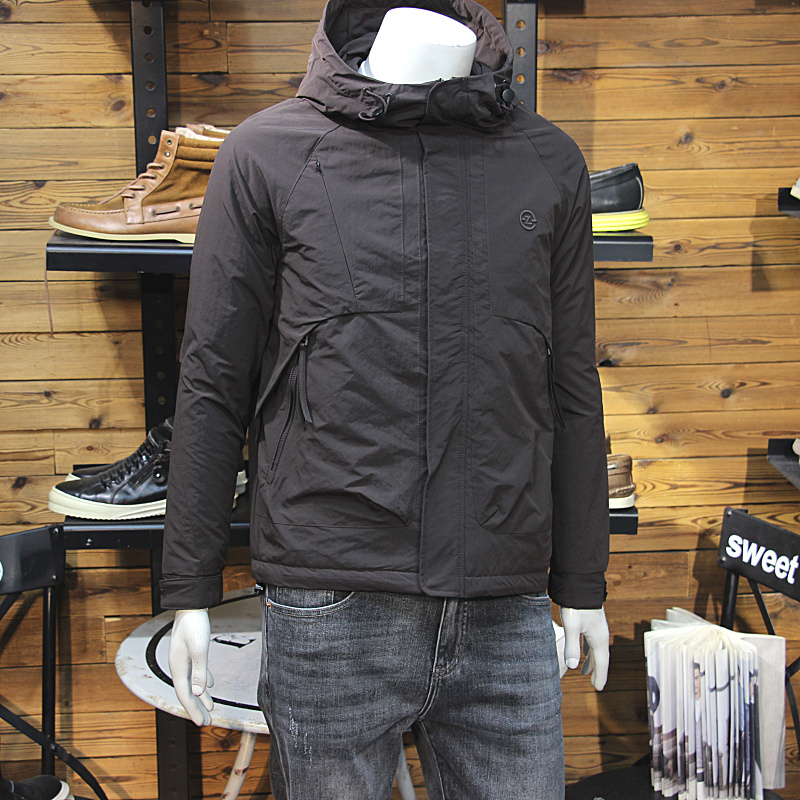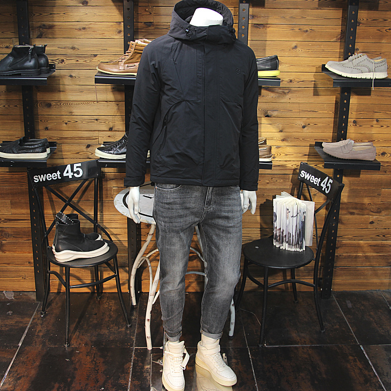 冬装男连帽棉服原创拼接拉链口袋青年修身二棉外套保暖男加棉棉衣