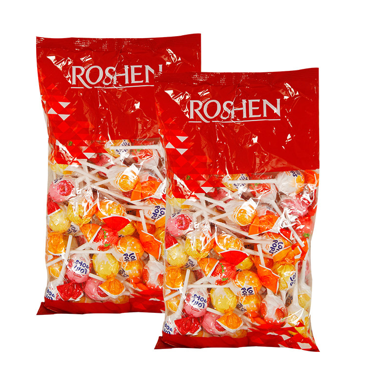 乌克兰进口棒棒糖如胜乳酸水果奶昔超大双色果味混合喜糖1000g