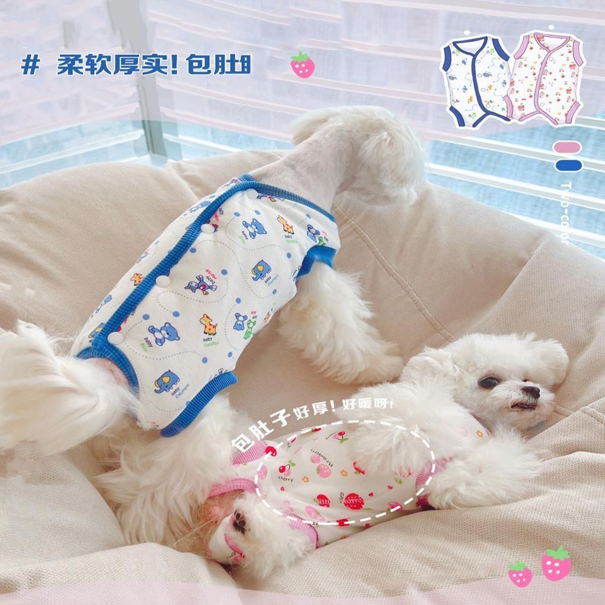 狗狗衣服秋冬款无袖护肚四脚护肚博美泰迪狗狗厚款按扣式夹棉背心