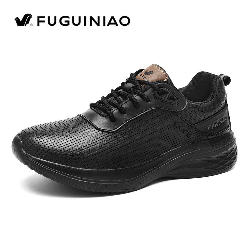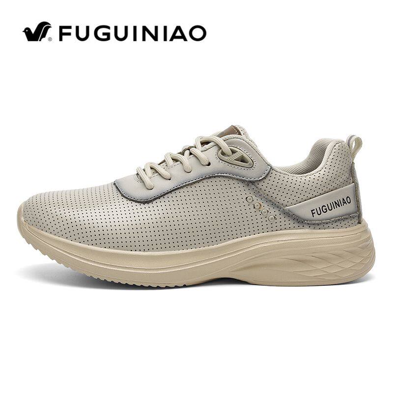 富贵鸟男鞋夏季冲孔镂空透气阿甘老爹鞋牛皮厚底户外跑步运动潮鞋