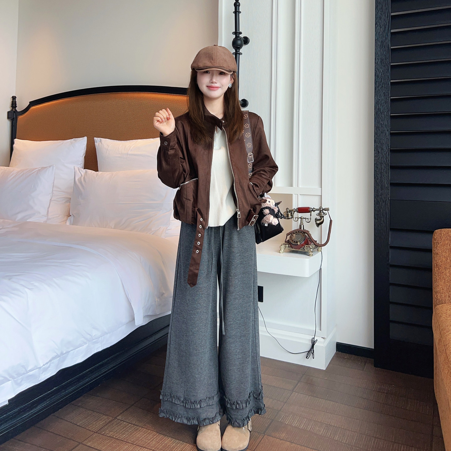 小小家 小个子小码花边阔腿休闲裤26春新款糯米裤显高瘦面膜裤