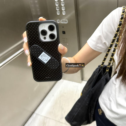 由里公园ins韩系波点可爱猫咪创可贴支架15适用17pro苹果17ProMax手机壳iPhone16全包17新款14Promax保护套女