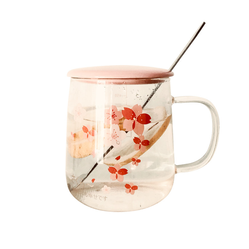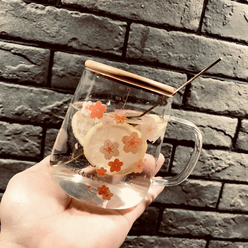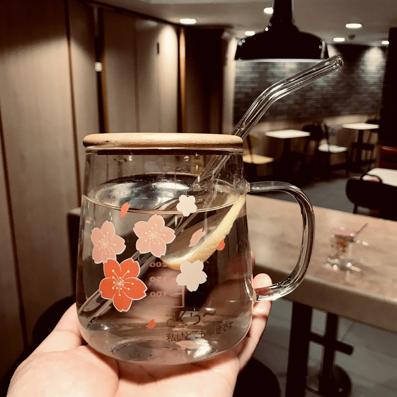 耐热水杯女家用大容量玻璃杯带把盖带刻度吸管可爱少女办公室杯子