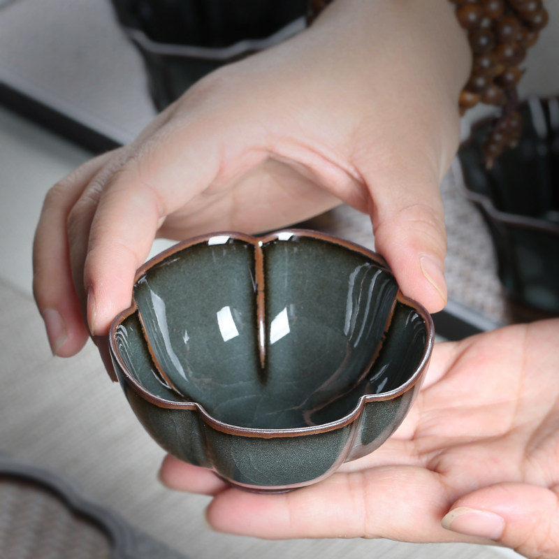 青瓷龙泉品茗杯单个套装功夫茶具茶杯哥窑铁胎手工主人杯茶碗礼品
