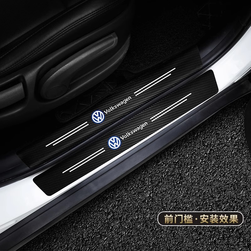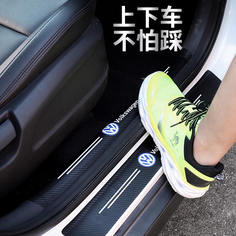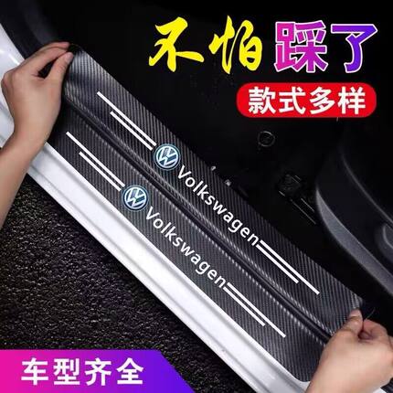 通用汽车门槛条防踩踏保护贴碳纤纹皮革贴迎宾踏板防刮卡通装饰条