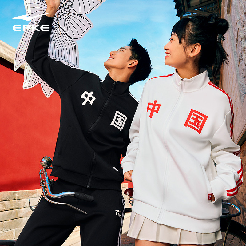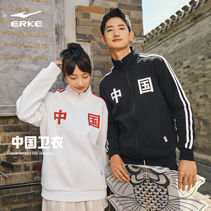 鸿星尔克于适中国外套冬季男女情侣款运动服立领开衫卫衣夹克上衣