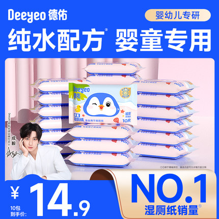 德佑婴童湿厕纸便携小包儿童专用厕纸擦屁屁湿巾随身装10抽