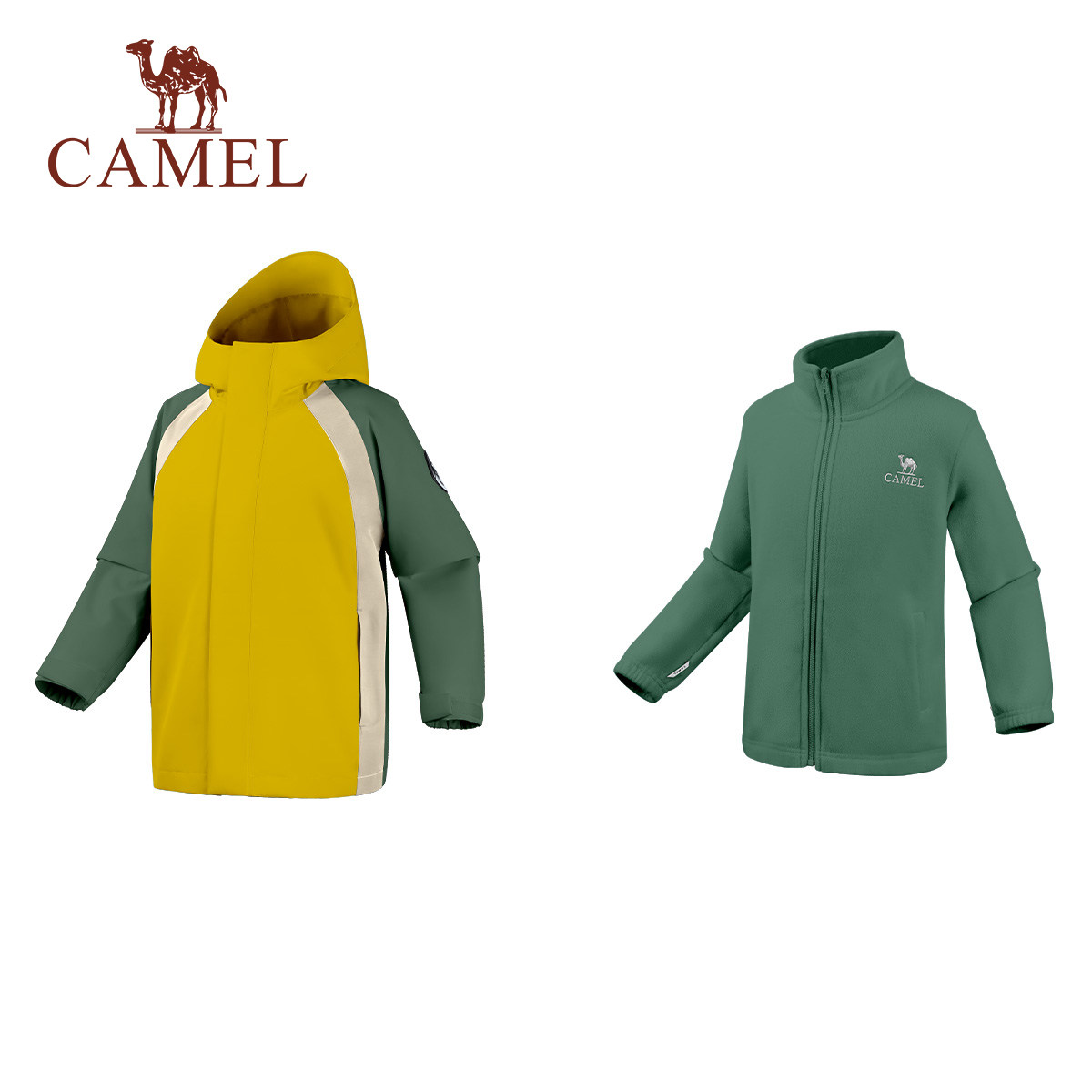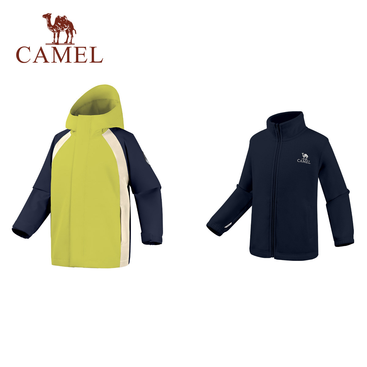 骆驼儿童三合一冲锋衣抓绒内胆2025年新款连帽男女童儿童外套
