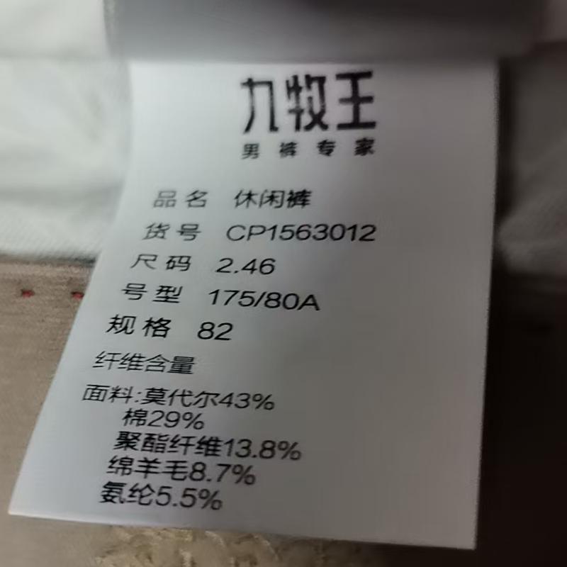 【绵羊毛加绒】九牧王精工小黑裤3.0新款正品秋冬休闲裤CP1563012