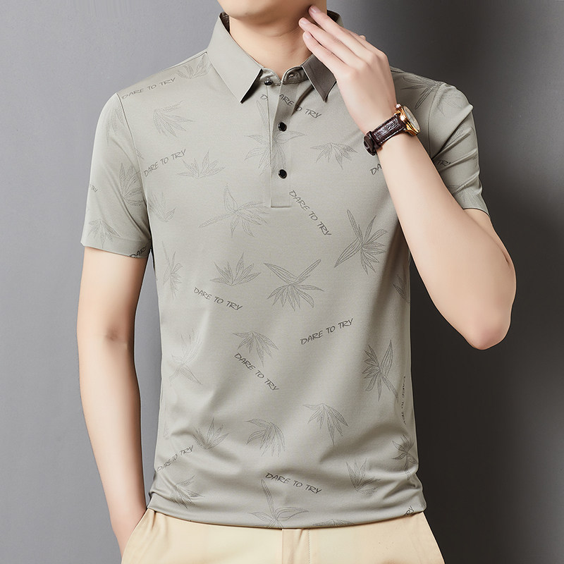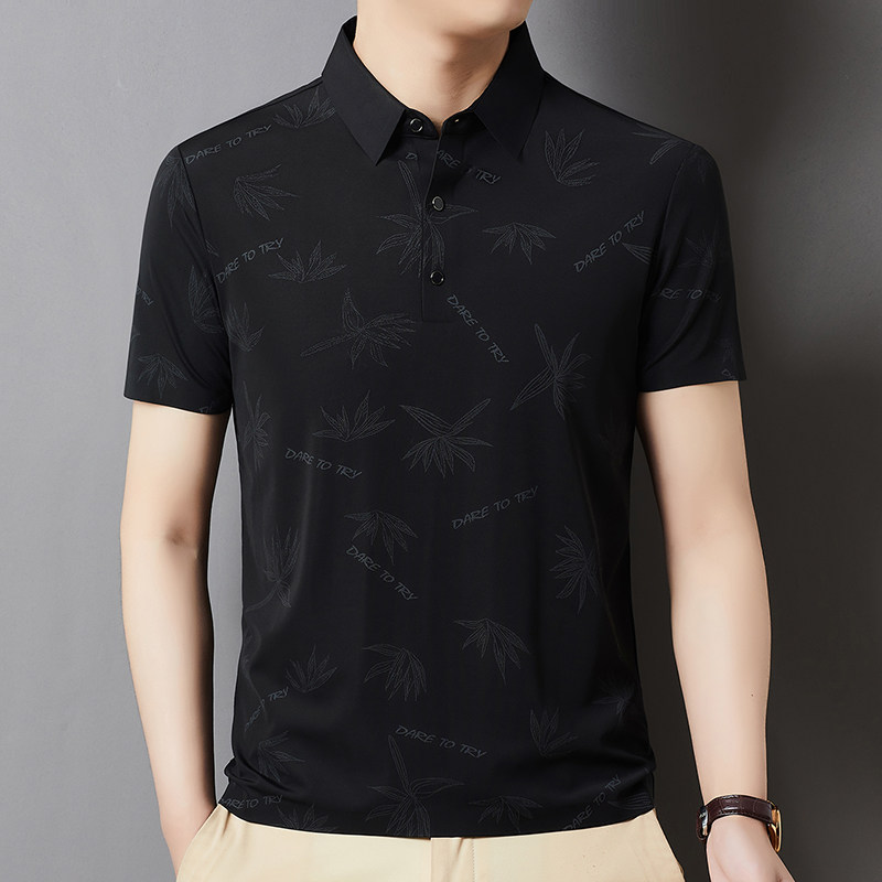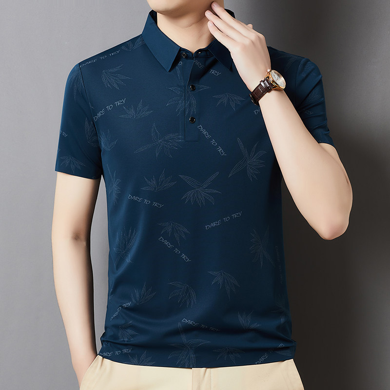 正品鄂尔多斯市桑蚕丝短袖t恤男款新夏季中年品牌高档冰丝POLO衫