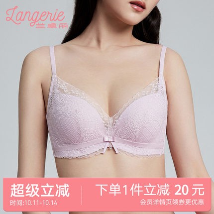 兰卓丽本命年红色内衣女小胸聚拢文胸软支撑蕾丝胸罩收副乳防下垂