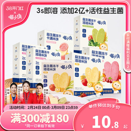 喵小侠黄桃冻干米饼磨牙饼干零食无添加盐,送宝宝婴幼儿辅食食谱