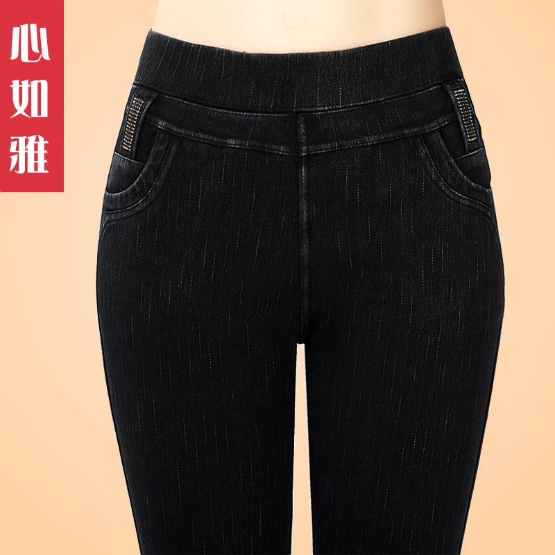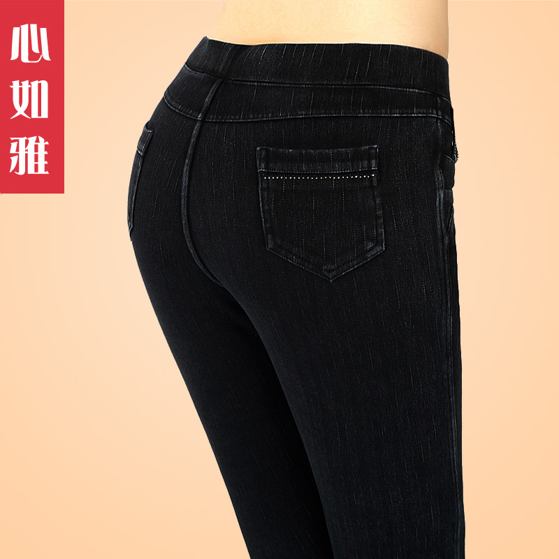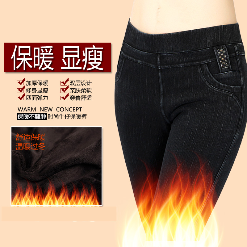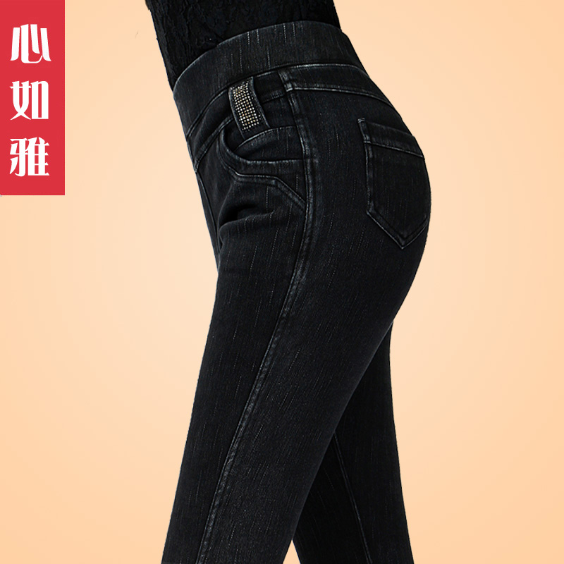 心如雅秋冬季新款高腰加绒加厚仿牛仔打底裤女裤大码弹力外穿棉裤