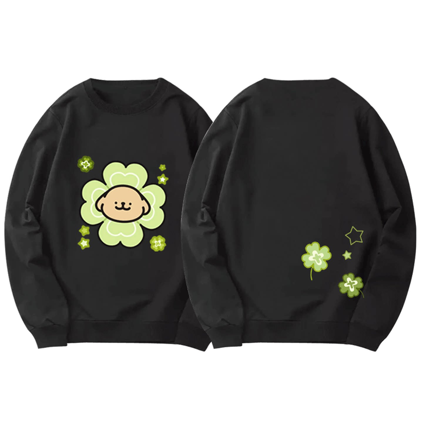 线条小狗卡通四叶草幸运御守周边男女青少年秋冬定制套头圆领卫衣