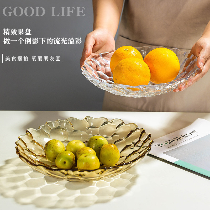水果盘轻奢高档玻璃果盘家用客厅水晶茶几干果糖果盘子零食瓜子盘
