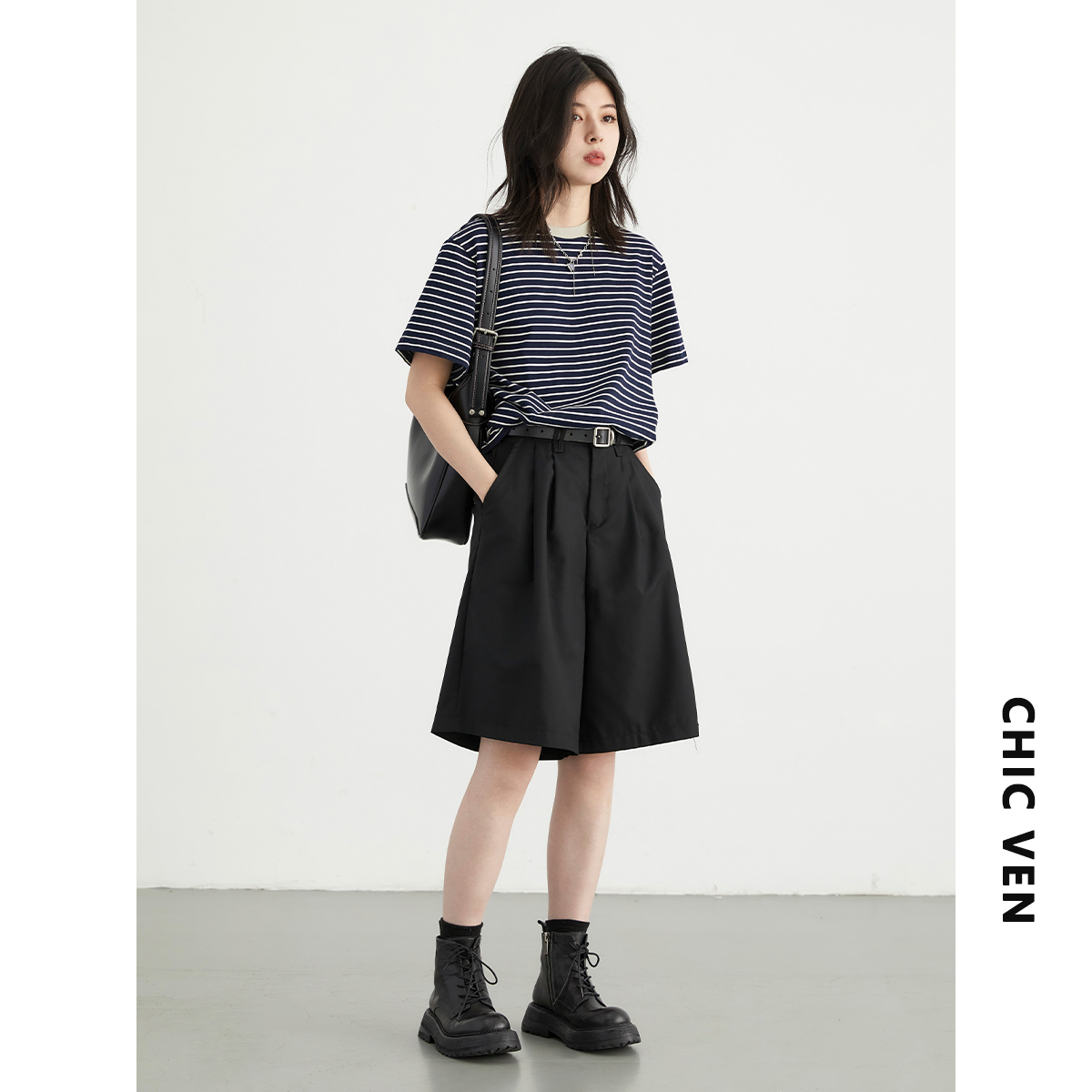 CV大码女装 2025夏季新款宽松高腰垂感阔腿休闲短裤五分西装裤女