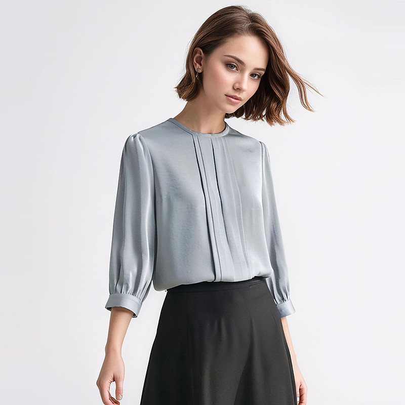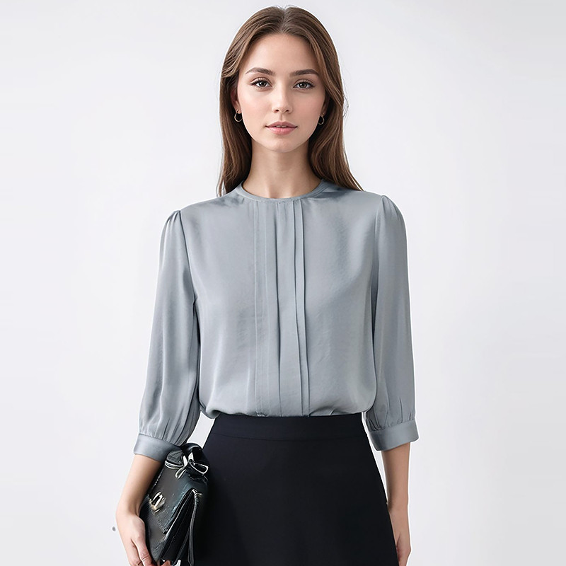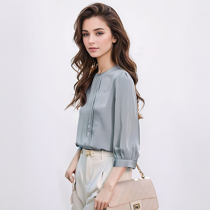 璐丝百丽时尚百搭女士七分袖雪纺衬衫高人气衬衣职场面试修身上衣