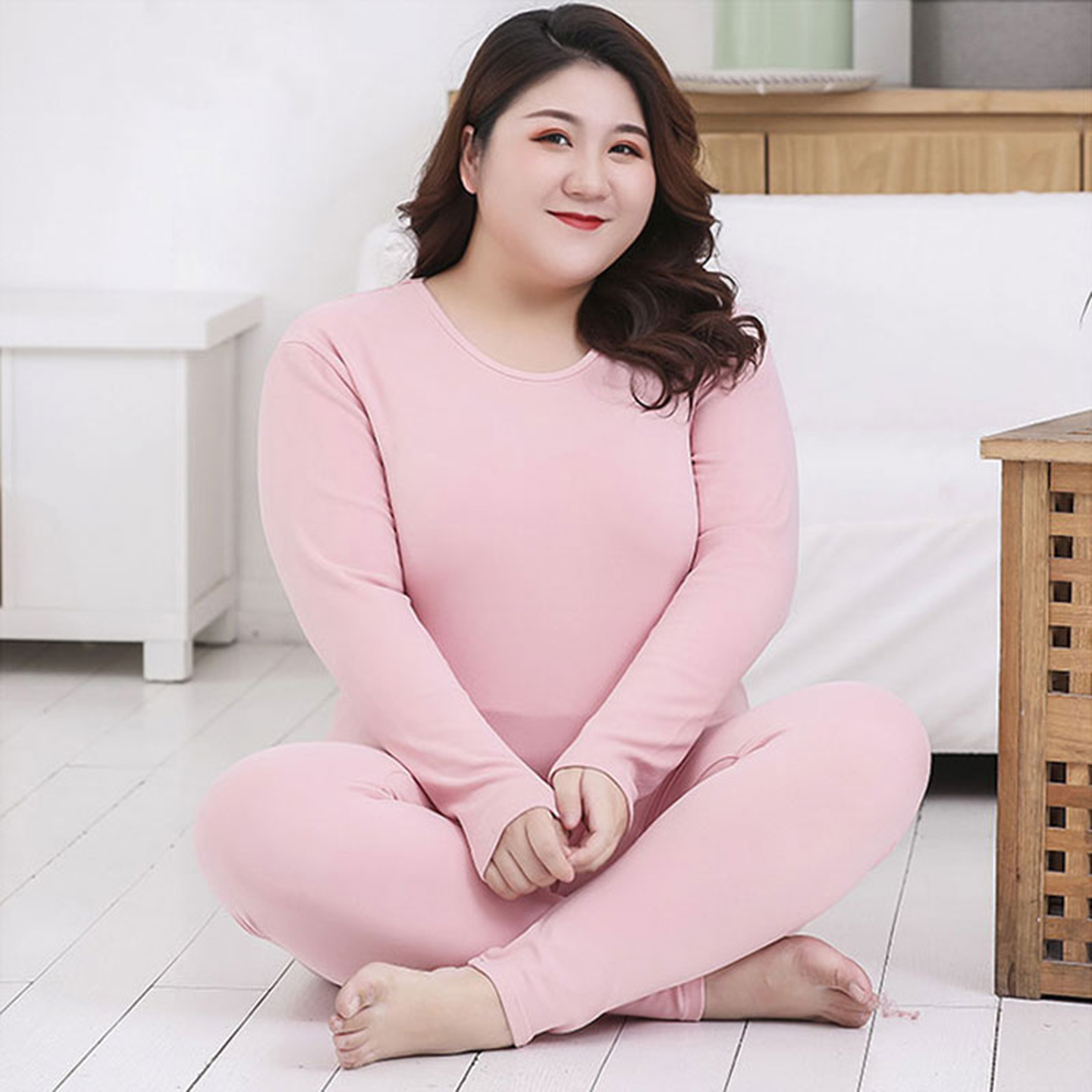 大码保暖内衣套装女纯棉薄款冬季打底衫中年胖mm200斤秋衣秋裤女