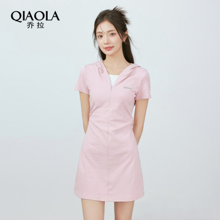 乔拉【樱岛游记】粉色假两件连帽短袖连衣裙女夏季新款2025a版裙