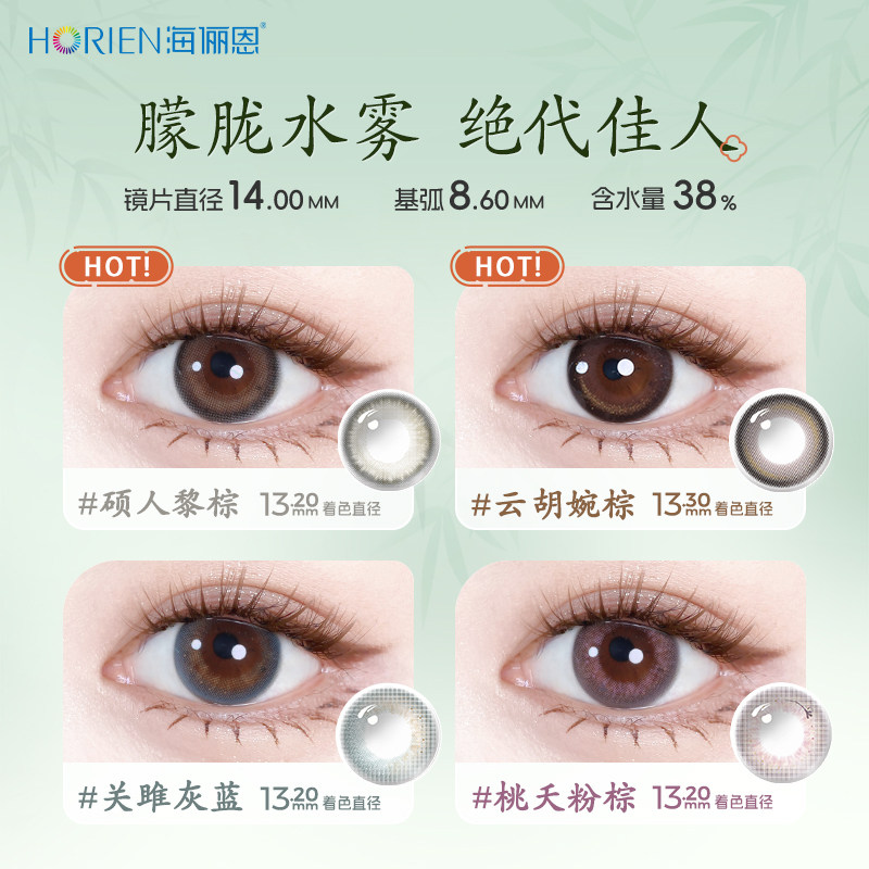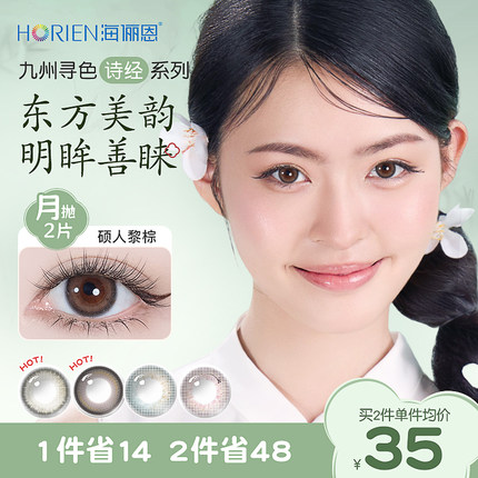 【百亿补贴】海俪恩九州诗经美瞳月抛2片彩色隐形眼镜棕色自然