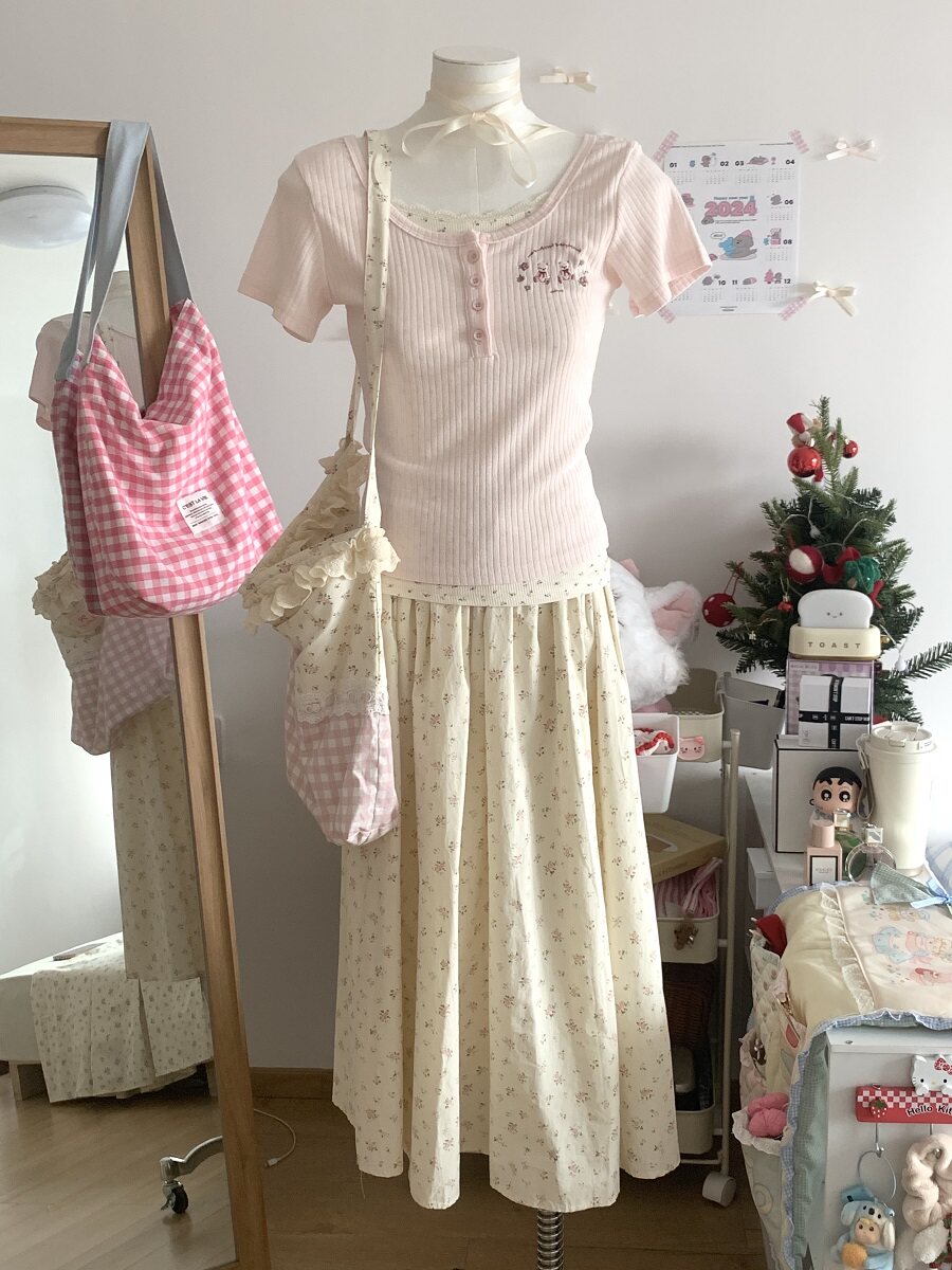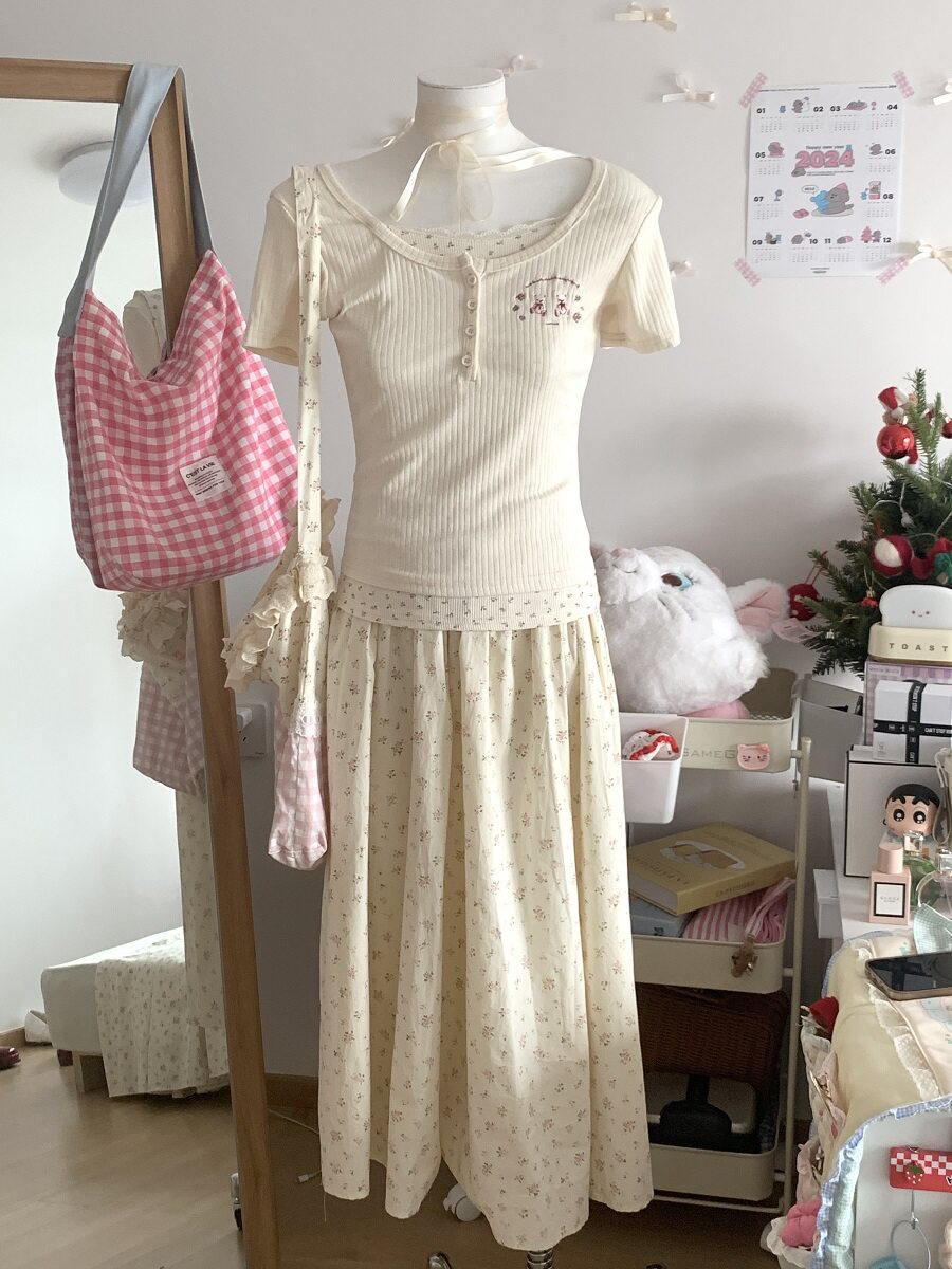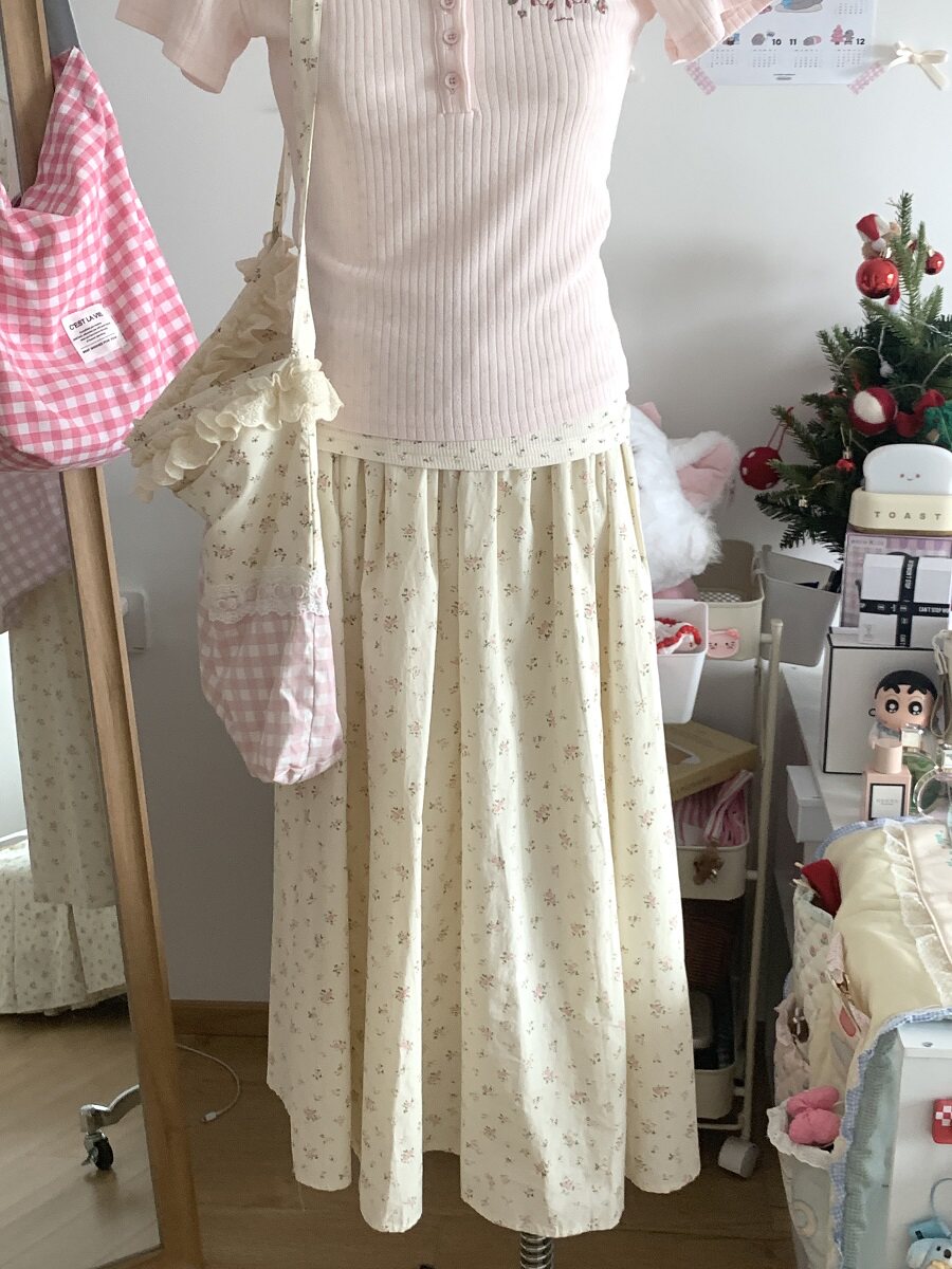 碎花蛋糕裙女夏2024新款高腰显瘦a字中长款小个子甜美蓬蓬半身裙