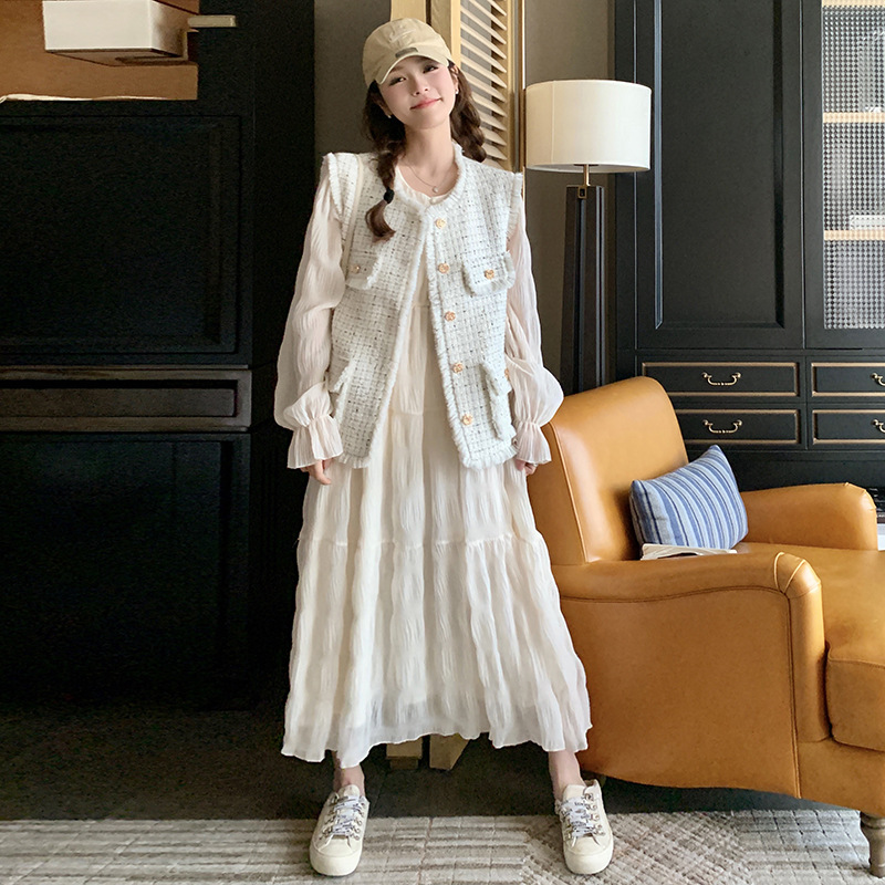 官网女装夏易菲小香风套装马甲外搭连衣裙女2025春秋新款仙女超仙