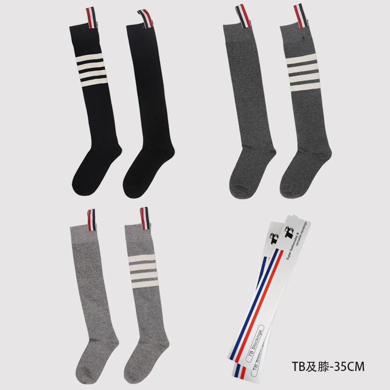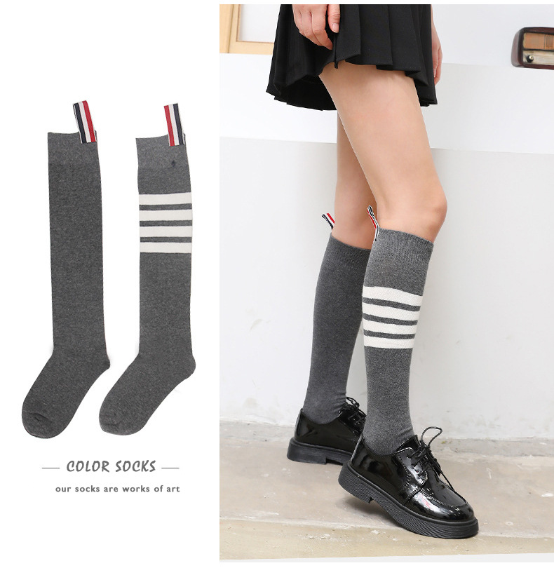TB袜子四条杠灰色中筒袜纯小腿袜短棉日系过膝袜长筒袜jk女压力袜