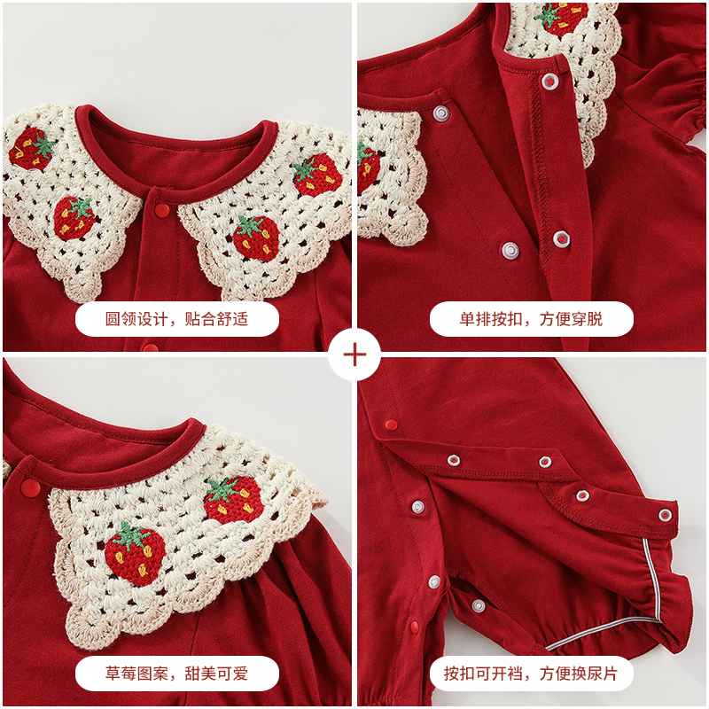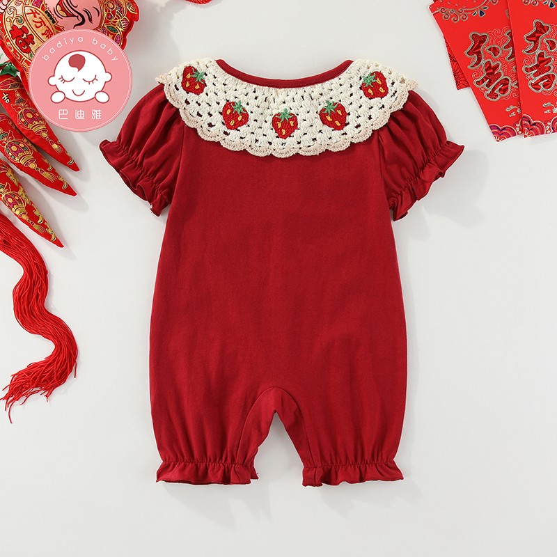 新生婴儿衣服夏季薄款连体哈衣红色满月百天包屁衣女宝宝周岁礼服