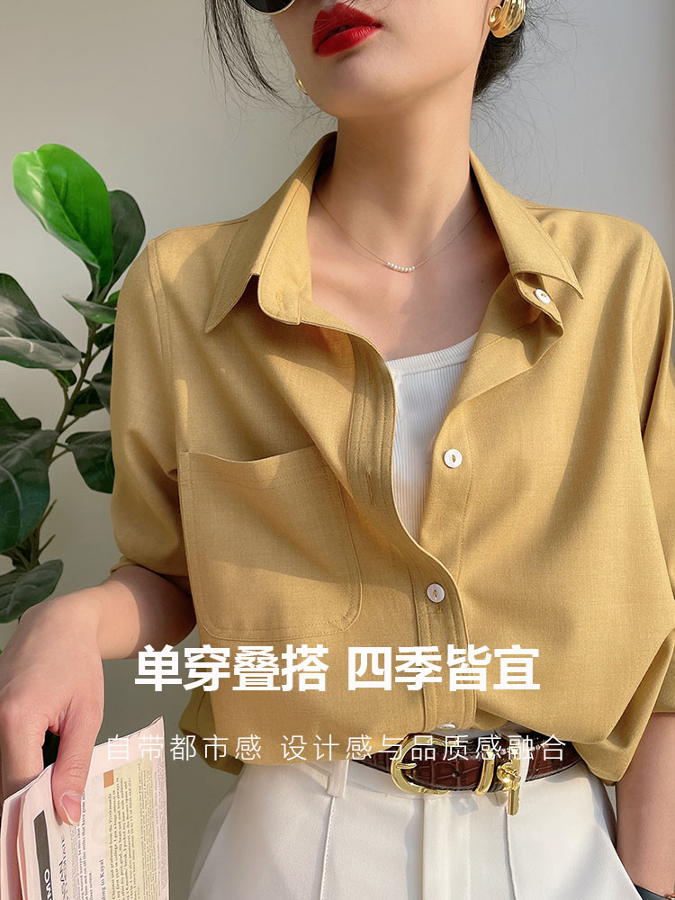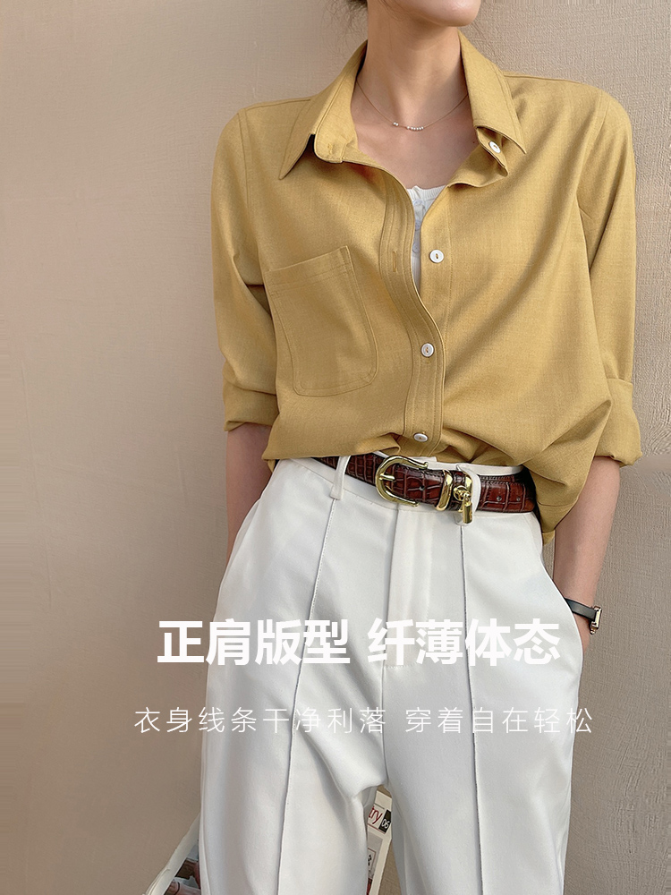 法式黄色衬衫春秋polo领衬衣