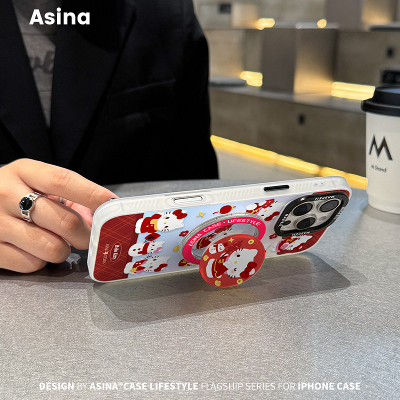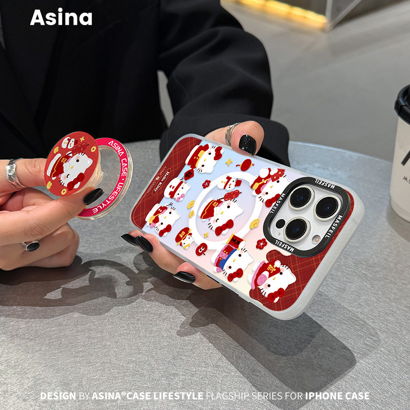 糖葫芦凯蒂适用iPhone17Promax手机壳15磁吸支架苹果16Pro保护套防摔plus全包14超薄新年ip13新款高级感红色