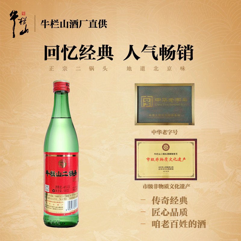 牛栏山二锅头46度酒大绿瓶清香型500ml*12瓶整箱装绿牛二