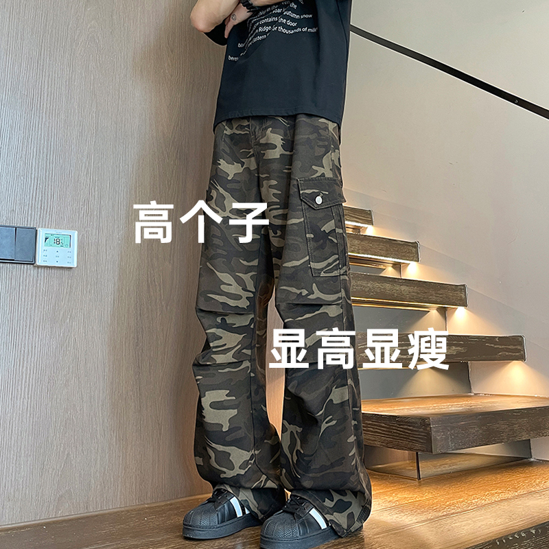 青少年加长裤子男美式高街迷彩牛仔裤秋季新款工装裤潮牌超长裤子
